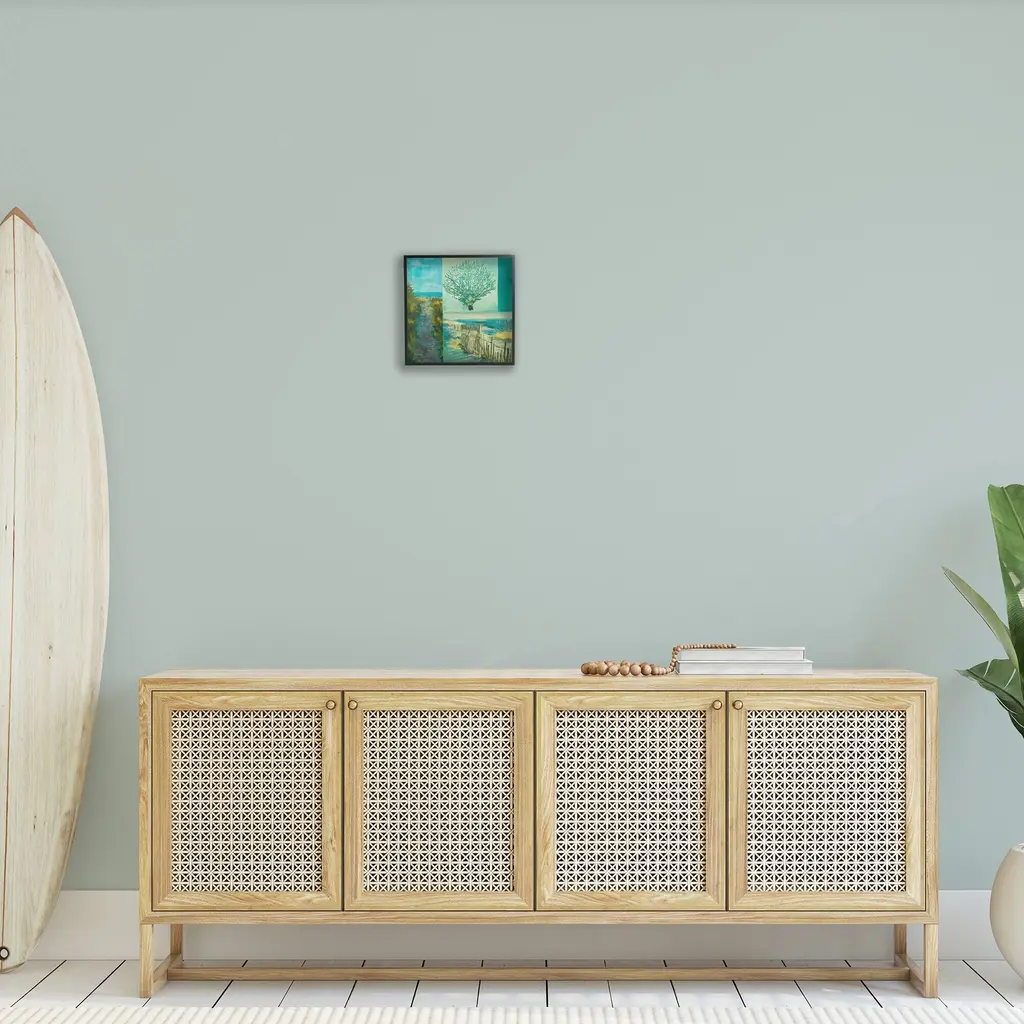 Add dimension to any room with our textured Framed Giclee Artwork. Our framed artwork is securely mounted into a 1.5-inch thick wood grain frame and ready to hang. Frames are available in three alluring styles: black, gray farmhouse and white. In addition, you should check out our oversized options if you want a statement piece. Stupell Wall Art is made in the USA.Features: Dimensions: 12 x 1.5 x 12 FramedFramed Giclee Product Sizes Include 12"x12", 17"x17", and 24"x24". Framed Giclee Products have a 1.5" Depth. Wall Art is Ready to Hang with Hardware Free Hanging. No installation required. For Easy Set Up Lean or Layer Artwork on Shelf or Against Wall.Our giclée prints are carefully mounted on a durable MDF backing, and then perfectly finished in a 1.5 inch thick woodgrain frame. Mounted frame colors include black, gray farmhouse and white. Made In USA.Artwork Relates To: Beach, Nautical, Ocean, Sea, Shore, Coastal, Abstract, Modern, Coral, Plant, Botanical, Path, FenceDesign by Liz Jardine