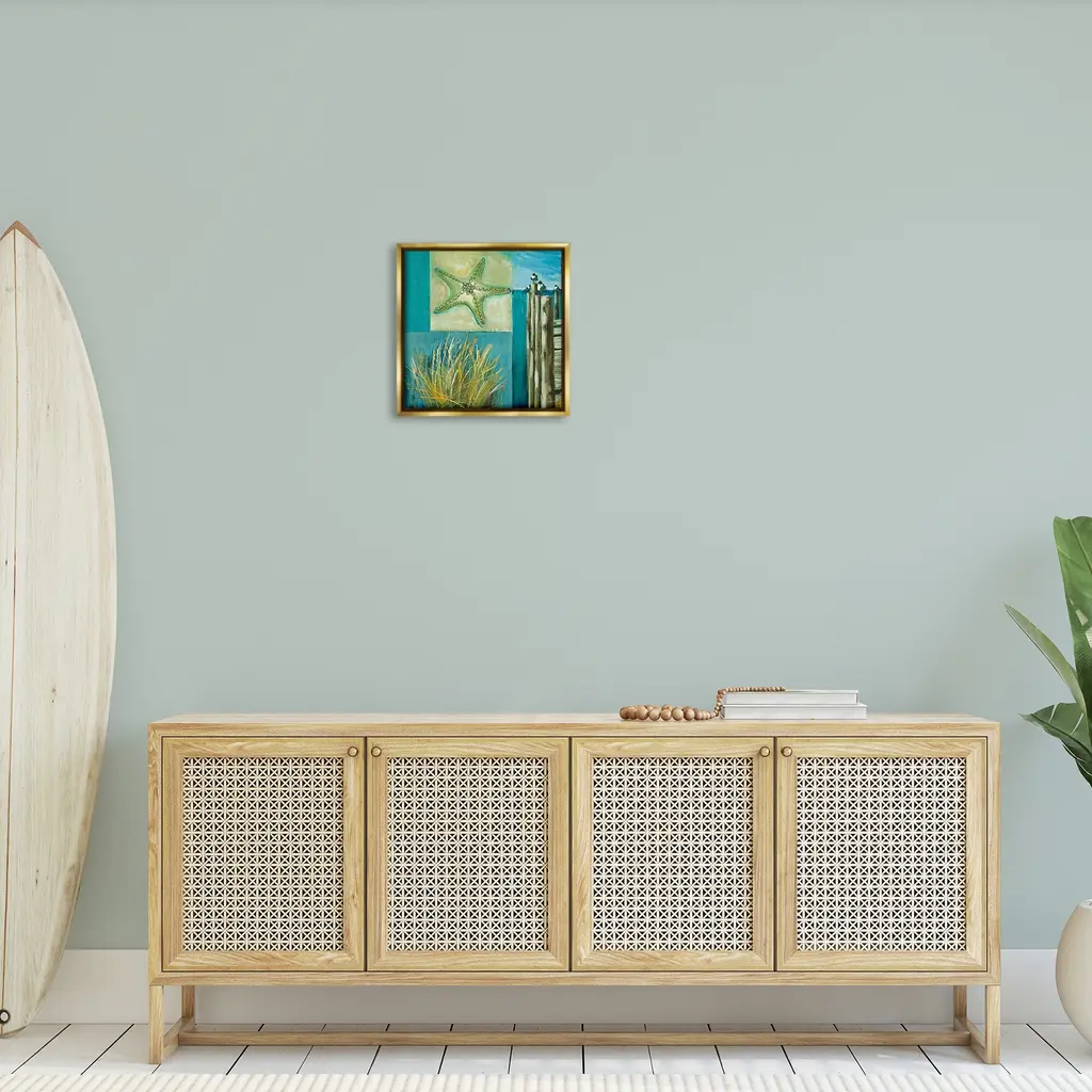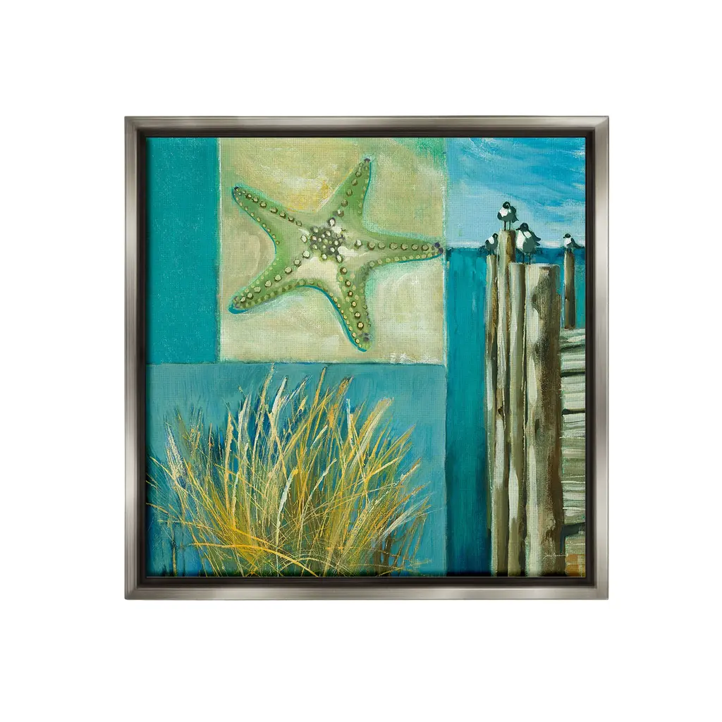 Elevate your home or office to the next level with Stupell Framed Floating Canvas Wall Art. Our premium hand-stretched canvas is mounted securely into a sturdy lightweight frame. The museum-style gap between the wrapped canvas and the box frame gives the illusion of floating artwork. Stupell Wall Art is made in the USA.Features: Dimensions: 18 x 1.7 x 18 Frame, 17 x 1.5 x 17 Canvas ArtFloating Frame Canvas Products are available in sizes 18"x18" and 25"x25". All Floating Frame Canvas Products have a 1.7" Depth.Wall Art is Ready to Hang with Hardware Free Hanging. No Installation required. For Easy Set Up Lean or Layer Artwork on Shelf or Against Wall. Artwork is Permently Fixed into the Frame.Our elevated 1.7" Thick Floating Frame is the perfect complement to our canvas style Wall Art. We use only the highest quality inks in house with industry leading printing solutions. Canvas is hand stretched over a durable wood foundation and then mounted securly into a Modern Box Frame. Made in the USA.Artwork Relates To: Beach, Nautical, Ocean, Sea, Shore, Coastal, Dock, Pier, Bird, Reeds, StarfishDesign by Liz Jardine