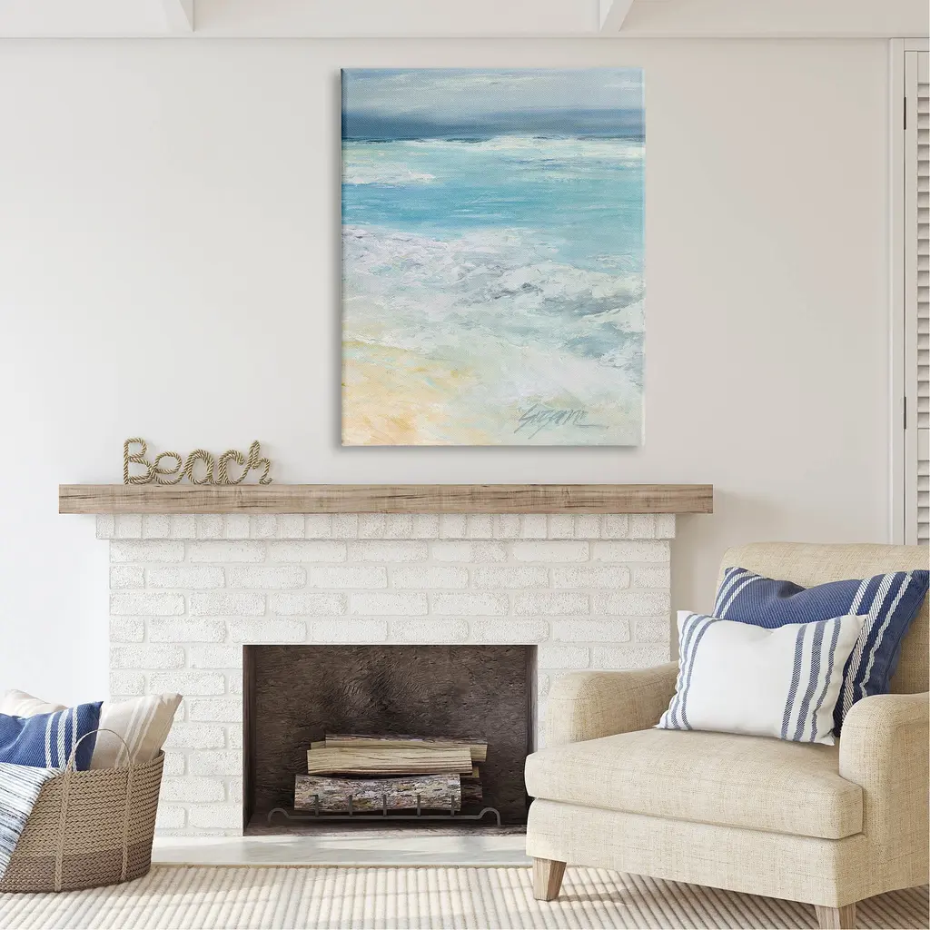 We create our stretched canvas to the highest standards. Using only the highest quality inks and canvas on Mimaki printers, we hand-cut and stretch each piece over a 1.5-inch thick wooden frame for hanging. As a result, the art comes ready to hang on the sturdy ledge with no installation required. Stupell Wall Art is made in the USA.Features: Dimensions: 16 x 1.5 x 20 InchesStretched Canvas Sizes Include Standard: 16 x 1.5 x 20 Large: 20 x 1.5 x 30 X-Large: 30 x 1.5 x 40 Oversized: 36 x 1.5 x 48Wall Art is Ready to Hang - No Installation or Hardware Needed. For Easy Set Up Lean or Layer Artwork on Shelf or Against Wall.Our stretched canvas is created with the highest standards. We use only the highest quality inks and canvas on our in house Mimaki printers, and then hand cut and stretch each piece over a 1.5 inch thick wooden frame for hanging. Made In USA.Artwork Relates To: Painting, Nature, Sea, Water, Beach, Coast, Shoreline, Sky, Sea Waves, Horizon, SceneryDesign by Suzanne Wilkins