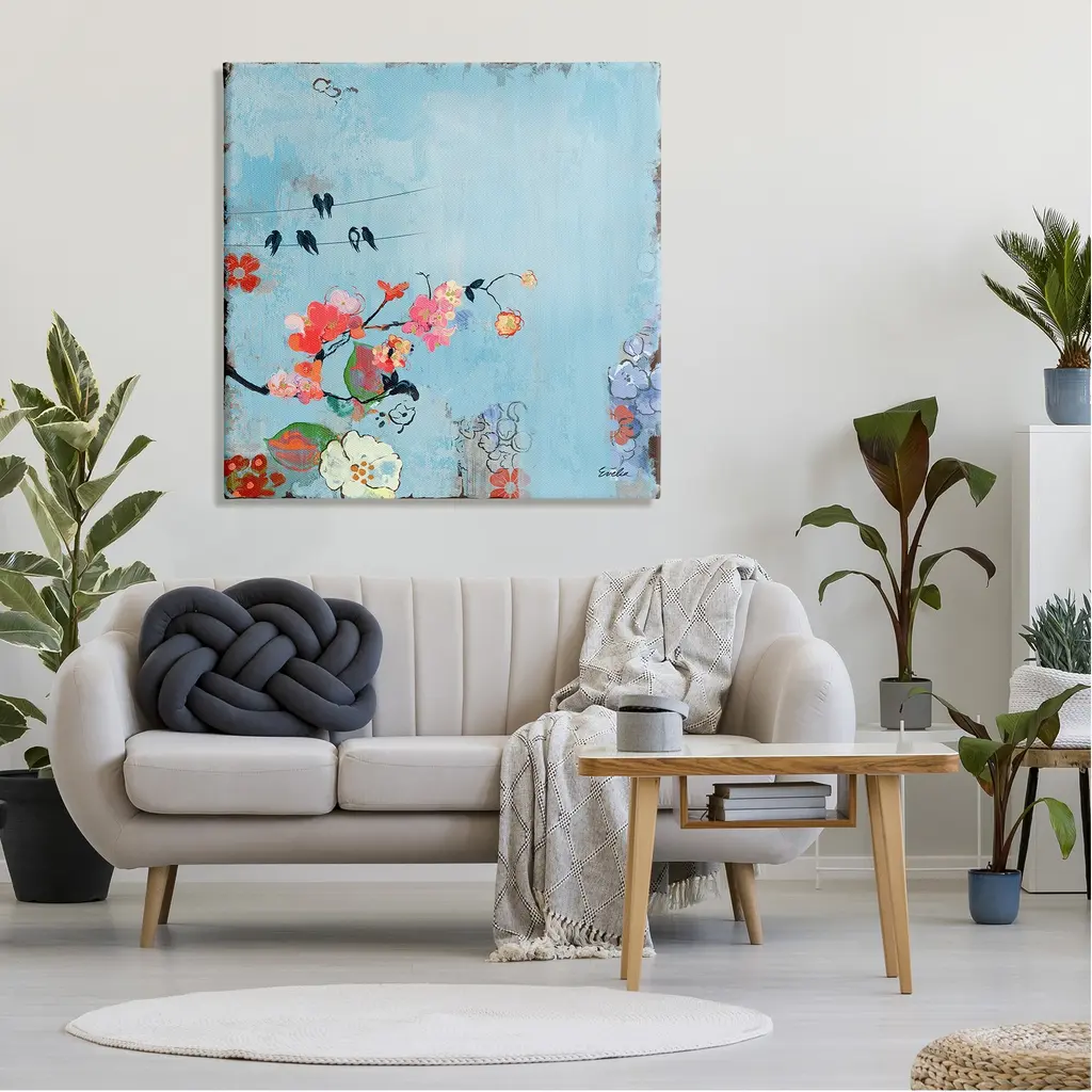 Stupell Modern Birds & Flowers Scenery Canvas Wall Art Design By Evelia Designs - 36 X 36