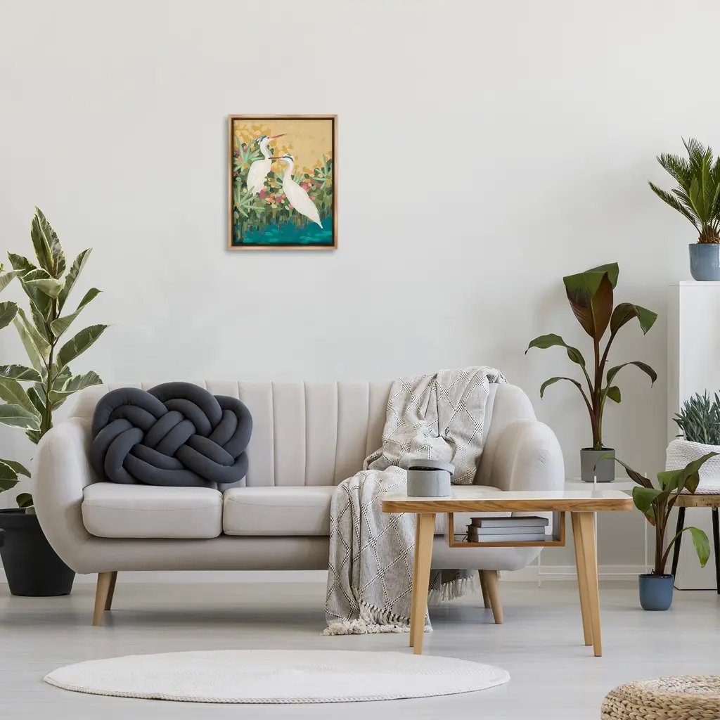 Elevate your home or office to the next level with Stupell Framed Floating Canvas Wall Art. Our premium hand-stretched canvas is mounted securely into a sturdy lightweight frame. The museum-style gap between the wrapped canvas and the box frame gives the illusion of floating artwork. Stupell Wall Art is made in the USA.Features: Dimensions: 17 x 1.7 x 21 Frame, 16 x 1.5 x 20 Canvas ArtFloating Frame Canvas Products are available in sizes 17"x21" and 25"x31". All Floating Frame Canvas Products have a 1.7" Depth.Wall Art is Ready to Hang with Hardware Free Hanging. No Installation required. For Easy Set Up Lean or Layer Artwork on Shelf or Against Wall. Artwork is Permently Fixed into the Frame.Our elevated 1.7" Thick Floating Frame is the perfect complement to our canvas style Wall Art. We use only the highest quality inks in house with industry leading printing solutions. Canvas is hand stretched over a durable wood foundation and then mounted securly into a Modern Box Frame. Made in the USA.Artwork Relates To: Animal, Bird, Painting, Crane Bird, Egret, Heron, Abstract, Modern, Pond, StreamDesign by June Erica Vess