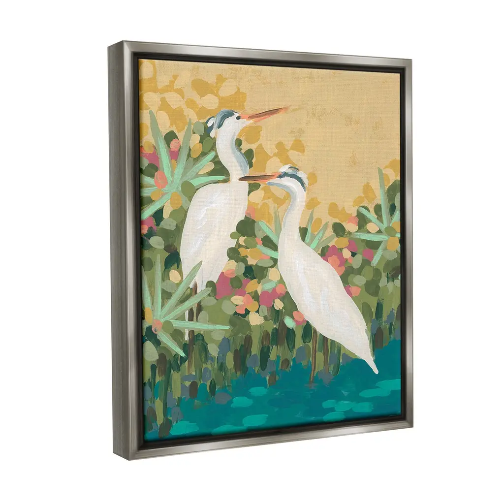 Elevate your home or office to the next level with Stupell Framed Floating Canvas Wall Art. Our premium hand-stretched canvas is mounted securely into a sturdy lightweight frame. The museum-style gap between the wrapped canvas and the box frame gives the illusion of floating artwork. Stupell Wall Art is made in the USA.Features: Dimensions: 17 x 1.7 x 21 Frame, 16 x 1.5 x 20 Canvas ArtFloating Frame Canvas Products are available in sizes 17"x21" and 25"x31". All Floating Frame Canvas Products have a 1.7" Depth.Wall Art is Ready to Hang with Hardware Free Hanging. No Installation required. For Easy Set Up Lean or Layer Artwork on Shelf or Against Wall. Artwork is Permently Fixed into the Frame.Our elevated 1.7" Thick Floating Frame is the perfect complement to our canvas style Wall Art. We use only the highest quality inks in house with industry leading printing solutions. Canvas is hand stretched over a durable wood foundation and then mounted securly into a Modern Box Frame. Made in the USA.Artwork Relates To: Animal, Bird, Painting, Crane Bird, Egret, Heron, Abstract, Modern, Pond, StreamDesign by June Erica Vess
