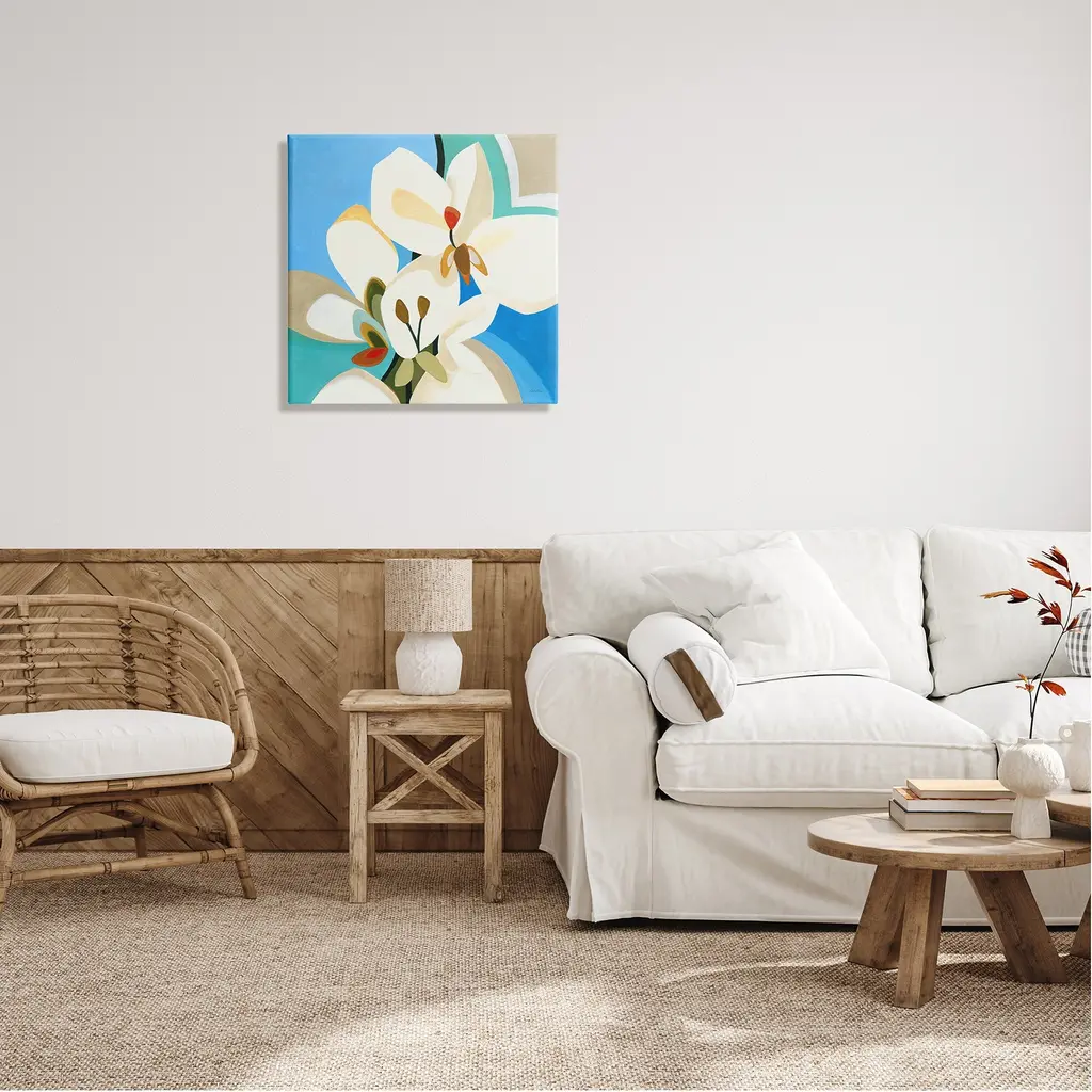 We create our stretched canvas to the highest standards. Using only the highest quality inks and canvas on Mimaki printers, we hand-cut and stretch each piece over a 1.5-inch thick wooden frame for hanging. As a result, the art comes ready to hang on the sturdy ledge with no installation required. Stupell Wall Art is made in the USA.Features: Dimensions: 17 x 1.5 x 17 InchesStretched Canvas Sizes Include Standard: 17 x 1.5 x 17 Large: 24 x 1.5 x 24 X-Large: 30 x 1.5 x 30 Oversized: 36 x 1.5 x 36Wall Art is Ready to Hang with Hardware Free Hanging. No installation required. For Easy Set Up Lean or Layer Artwork on Shelf or Against Wall.Our stretched canvas is created with the highest standards. We use only the highest quality inks and canvas on our in house Mimaki printers, and then hand cut and stretch each piece over a 1.5 inch thick wooden frame for hanging. Made In USA.Artwork Relates To: Flower, Plant, Painting, Modern, Contemporary, Abstract, BlueDesign by Liz Jardine