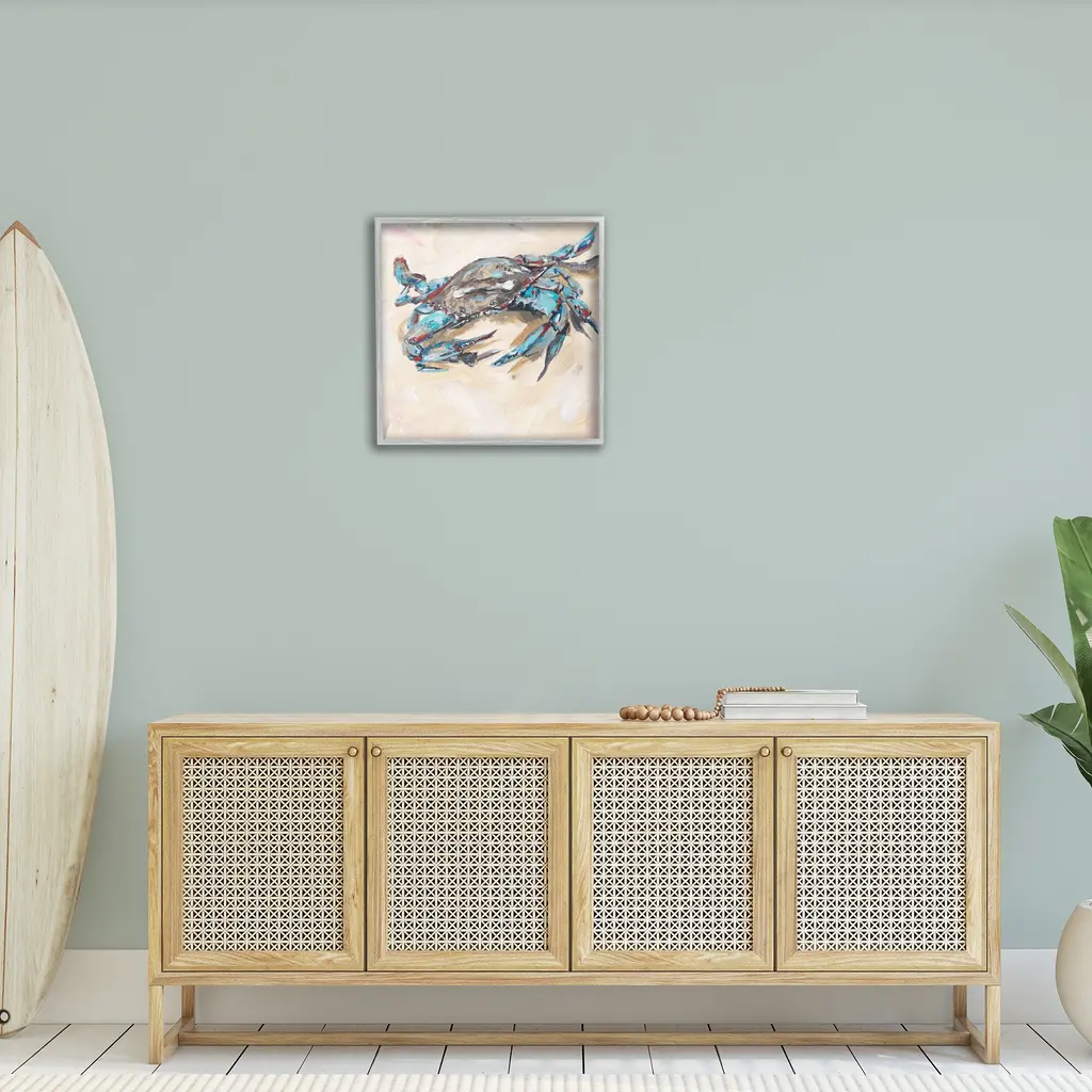 Add dimension to any room with our textured Framed Giclee Artwork. Our framed artwork is securely mounted into a 1.5-inch thick wood grain frame and ready to hang. Frames are available in three alluring styles: black, gray farmhouse and white. In addition, you should check out our oversized options if you want a statement piece. Stupell Wall Art is made in the USA.Features: Dimensions: 12 x 1.5 x 12 FramedFramed Giclee Product Sizes Include 12"x12", 17"x17", and 24"x24". Framed Giclee Products have a 1.5" Depth. Wall Art is Ready to Hang with Hardware Free Hanging. No installation required. For Easy Set Up Lean or Layer Artwork on Shelf or Against Wall.Our giclée prints are carefully mounted on a durable MDF backing, and then perfectly finished in a 1.5 inch thick woodgrain frame. Mounted frame colors include black, gray farmhouse and white. Made In USA.Artwork Relates To: Animal, Crab, Sea Life, Fish, Nautical, Beach, Abstract, ModernDesign by Melissa Wang