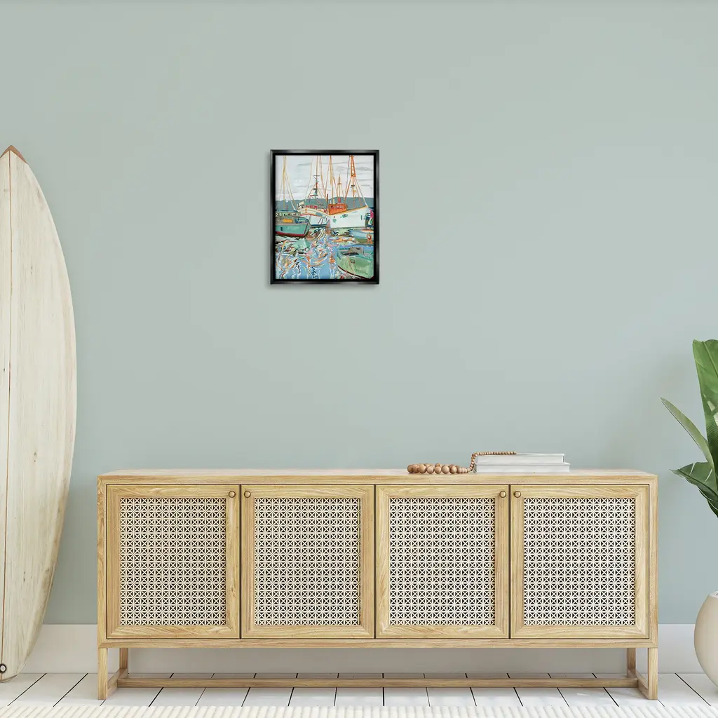 Elevate your home or office to the next level with Stupell Framed Floating Canvas Wall Art. Our premium hand-stretched canvas is mounted securely into a sturdy lightweight frame. The museum-style gap between the wrapped canvas and the box frame gives the illusion of floating artwork. Stupell Wall Art is made in the USA.Features: Dimensions: 17 x 1.7 x 21 Frame, 16 x 1.5 x 20 Canvas ArtFloating Frame Canvas Products are available in sizes 17"x21" and 25"x31". All Floating Frame Canvas Products have a 1.7" Depth.Wall Art is Ready to Hang with Hardware Free Hanging. No Installation required. For Easy Set Up Lean or Layer Artwork on Shelf or Against Wall. Artwork is Permently Fixed into the Frame.Our elevated 1.7" Thick Floating Frame is the perfect complement to our canvas style Wall Art. We use only the highest quality inks in house with industry leading printing solutions. Canvas is hand stretched over a durable wood foundation and then mounted securly into a Modern Box Frame. Made in the USA.Artwork Relates To: Boat, Sailboat, Scenery, Water, Watercraft, Sea, Lake, Boating, Waterfront, Landscape, Harbor, PierDesign by Melissa Wang