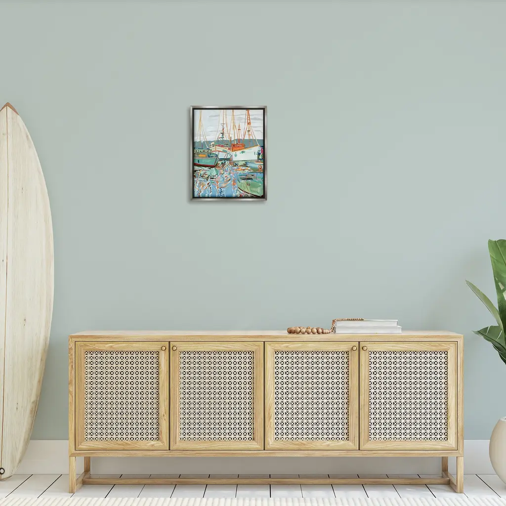Elevate your home or office to the next level with Stupell Framed Floating Canvas Wall Art. Our premium hand-stretched canvas is mounted securely into a sturdy lightweight frame. The museum-style gap between the wrapped canvas and the box frame gives the illusion of floating artwork. Stupell Wall Art is made in the USA.Features: Dimensions: 17 x 1.7 x 21 Frame, 16 x 1.5 x 20 Canvas ArtFloating Frame Canvas Products are available in sizes 17"x21" and 25"x31". All Floating Frame Canvas Products have a 1.7" Depth.Wall Art is Ready to Hang with Hardware Free Hanging. No Installation required. For Easy Set Up Lean or Layer Artwork on Shelf or Against Wall. Artwork is Permently Fixed into the Frame.Our elevated 1.7" Thick Floating Frame is the perfect complement to our canvas style Wall Art. We use only the highest quality inks in house with industry leading printing solutions. Canvas is hand stretched over a durable wood foundation and then mounted securly into a Modern Box Frame. Made in the USA.Artwork Relates To: Boat, Sailboat, Scenery, Water, Watercraft, Sea, Lake, Boating, Waterfront, Landscape, Harbor, PierDesign by Melissa Wang