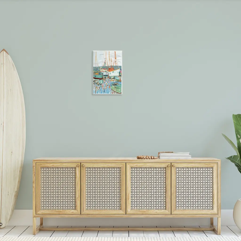 Our wall plaques start as high-quality lithograph prints mounted on durable 0.5-inch thick MDF wood. Each piece is hand finished and comes with a fresh layer of white foil on the sides to give it a crisp, clean look. Plaques arrive ready to hang without installation and come with removable plastic corners to keep them from damage in transit. Stupell Wall Art is made in the USA.Features: Dimensions: 10 x 0.5 x 15 InchesWall Plaque Product Sizes Include 10"x15" and 13"x19". All wall plaque products have a 0.5" Depth. Wall Art is Ready to Hang with Hardware Free Hanging. No installation required. For Easy Set Up Lean or Layer Artwork on Shelf or Against Wall.All of our wall plaques start off as high quality lithograph prints that are then mounted on durable 0.5 inch thick MDF wood. Each piece is hand finished and comes with a fresh layer of foil on the sides to give it a crisp clean look. Made In USA.Artwork Relates To: Boat, Sailboat, Scenery, Water, Watercraft, Sea, Lake, Boating, Waterfront, Landscape, Harbor, PierDesign by Melissa Wang