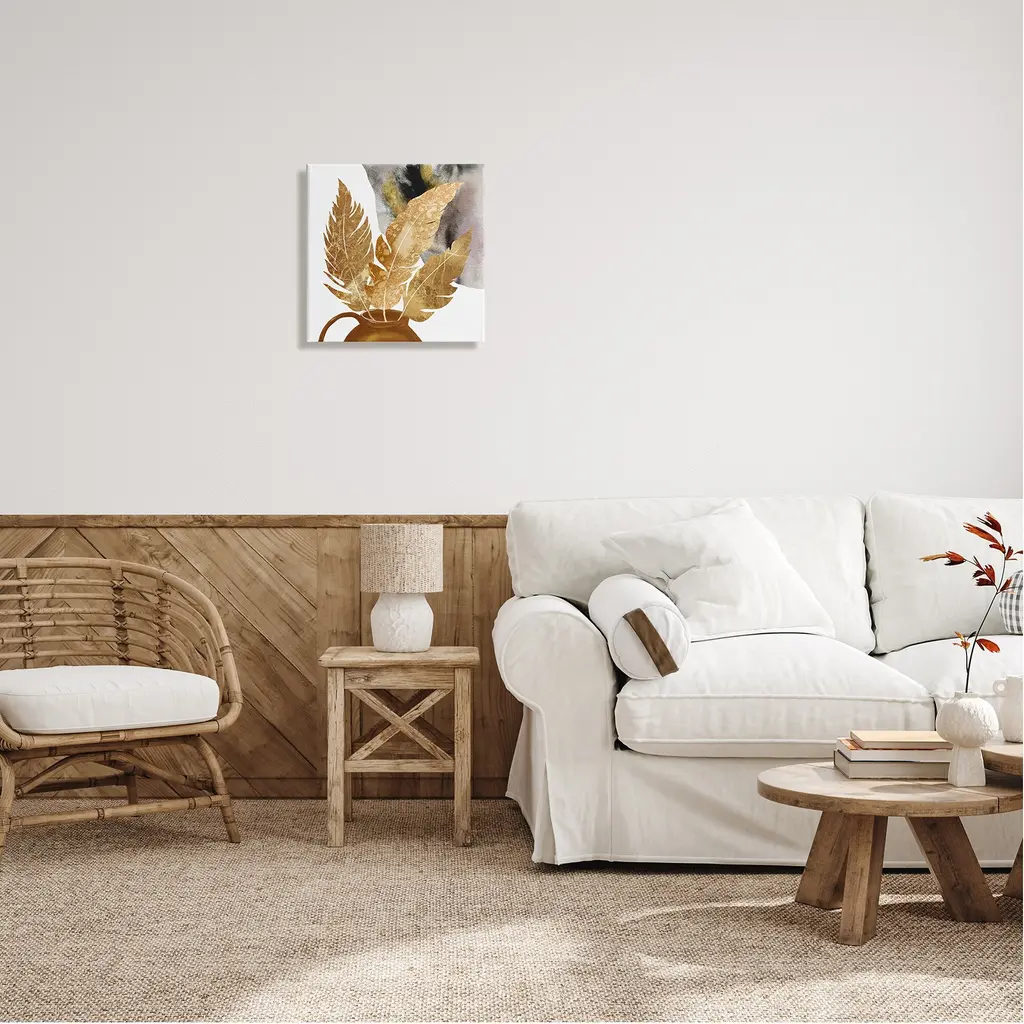 We create our stretched canvas to the highest standards. Using only the highest quality inks and canvas on Mimaki printers, we hand-cut and stretch each piece over a 1.5-inch thick wooden frame for hanging. As a result, the art comes ready to hang on the sturdy ledge with no installation required. Stupell Wall Art is made in the USA.Features: Dimensions: 17 x 1.5 x 17 InchesStretched Canvas Sizes Include Standard: 17 x 1.5 x 17 Large: 24 x 1.5 x 24 X-Large: 30 x 1.5 x 30 Oversized: 36 x 1.5 x 36Wall Art is Ready to Hang with Hardware Free Hanging. No installation required. For Easy Set Up Lean or Layer Artwork on Shelf or Against Wall.Our stretched canvas is created with the highest standards. We use only the highest quality inks and canvas on our in house Mimaki printers, and then hand cut and stretch each piece over a 1.5 inch thick wooden frame for hanging. Made In USA.Artwork Relates To: Leaf, Plant, Rustic, Boho, Abstract, ModernDesign by Ziwei Li