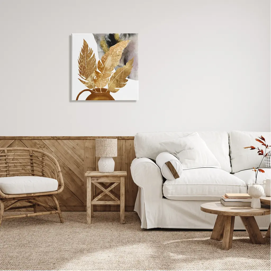 We create our stretched canvas to the highest standards. Using only the highest quality inks and canvas on Mimaki printers, we hand-cut and stretch each piece over a 1.5-inch thick wooden frame for hanging. As a result, the art comes ready to hang on the sturdy ledge with no installation required. Stupell Wall Art is made in the USA.Features: Dimensions: 17 x 1.5 x 17 InchesStretched Canvas Sizes Include Standard: 17 x 1.5 x 17 Large: 24 x 1.5 x 24 X-Large: 30 x 1.5 x 30 Oversized: 36 x 1.5 x 36Wall Art is Ready to Hang with Hardware Free Hanging. No installation required. For Easy Set Up Lean or Layer Artwork on Shelf or Against Wall.Our stretched canvas is created with the highest standards. We use only the highest quality inks and canvas on our in house Mimaki printers, and then hand cut and stretch each piece over a 1.5 inch thick wooden frame for hanging. Made In USA.Artwork Relates To: Leaf, Plant, Rustic, Boho, Abstract, ModernDesign by Ziwei Li
