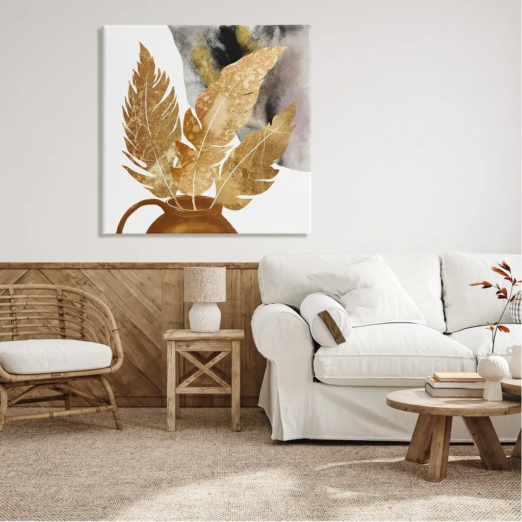 We create our stretched canvas to the highest standards. Using only the highest quality inks and canvas on Mimaki printers, we hand-cut and stretch each piece over a 1.5-inch thick wooden frame for hanging. As a result, the art comes ready to hang on the sturdy ledge with no installation required. Stupell Wall Art is made in the USA.Features: Dimensions: 17 x 1.5 x 17 InchesStretched Canvas Sizes Include Standard: 17 x 1.5 x 17 Large: 24 x 1.5 x 24 X-Large: 30 x 1.5 x 30 Oversized: 36 x 1.5 x 36Wall Art is Ready to Hang with Hardware Free Hanging. No installation required. For Easy Set Up Lean or Layer Artwork on Shelf or Against Wall.Our stretched canvas is created with the highest standards. We use only the highest quality inks and canvas on our in house Mimaki printers, and then hand cut and stretch each piece over a 1.5 inch thick wooden frame for hanging. Made In USA.Artwork Relates To: Leaf, Plant, Rustic, Boho, Abstract, ModernDesign by Ziwei Li
