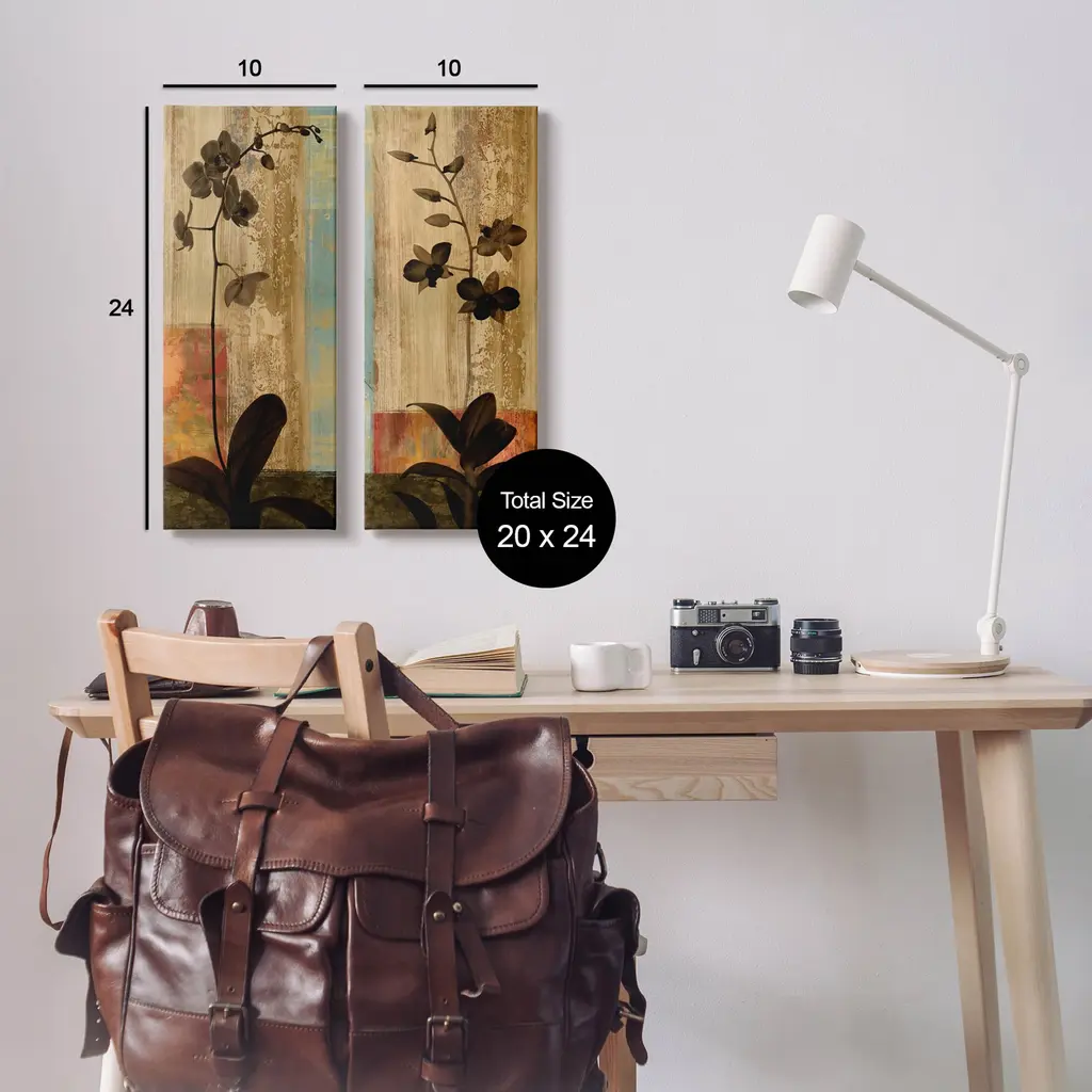 The more the better, right? Multi-Piece Canvas Sets help fill up the entire wall with excitement. Proudly made in the USA, Our stretched canvas is created with the highest standards. We use only the highest quality inks and canvas on our in house printers, and then hand cut and stretch each piece over a 1.5 inch thick wooden frame for hanging. The art comes ready to hang with no installation required.Features: Dimensions: 2 Piece Set, Each Panel is 10 x 1.5 x 24 InchesStretched Canvas Set Sizes Include Standard: 2pc, Each is 10 x 1.5 x 24 Large: 2pc, Each is 13 x 1.5 x 30Wall Art is Ready to Hang - No Installation or Hardware Needed. For Easy Set Up Lean or Layer Artwork on Shelf or Against Wall.Our stretched canvas is created with the highest standards. We use only the highest quality inks and canvas on our in house Mimaki printers, and then hand cut and stretch each piece over a 1.5 inch thick wooden frame for hanging. Made In USA.Artwork Relates To: Painting, Plant, Modern, Floral, Orchid, Contemporary, TraditionalDesign by Chris Donovan