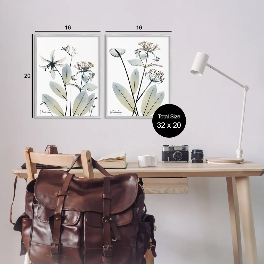 Fill any space in your home or office with our Framed Wall Art Sets. Our framed artwork is securely mounted into a 1.5-inch thick wood grain frame and ready to hang. Frames are available in three alluring styles: black, gray farmhouse and white. Stupell Wall Art is made in the USA.Features: Dimensions: 2 Piece Set, Each Panel is 11 x 1.5 x 14 FramedTwo Piece Framed Giclee Sets are available as 11"x14", 16"x20" or 24"x30" Panels. All Framed Giclee Products have a 1.5" Depth.Wall Art is Ready to Hang with Hardware Free Hanging. No installation required. For Easy Set Up Lean or Layer Artwork on Shelf or Against Wall.Curated Wall Art Sets make it easy for you complete the theme for any room. Our giclée prints are carefully mounted on a durable MDF backing, and then perfectly finished in a 1.5 inch thick woodgrain frame. Mounted frame colors include black, gray farmhouse and white. Made In USA.Artwork Relates To: Flower, Plant, Abstract, Modern, X-Ray, Blossom, Leaf, NatureDesign by Albert Koetsier