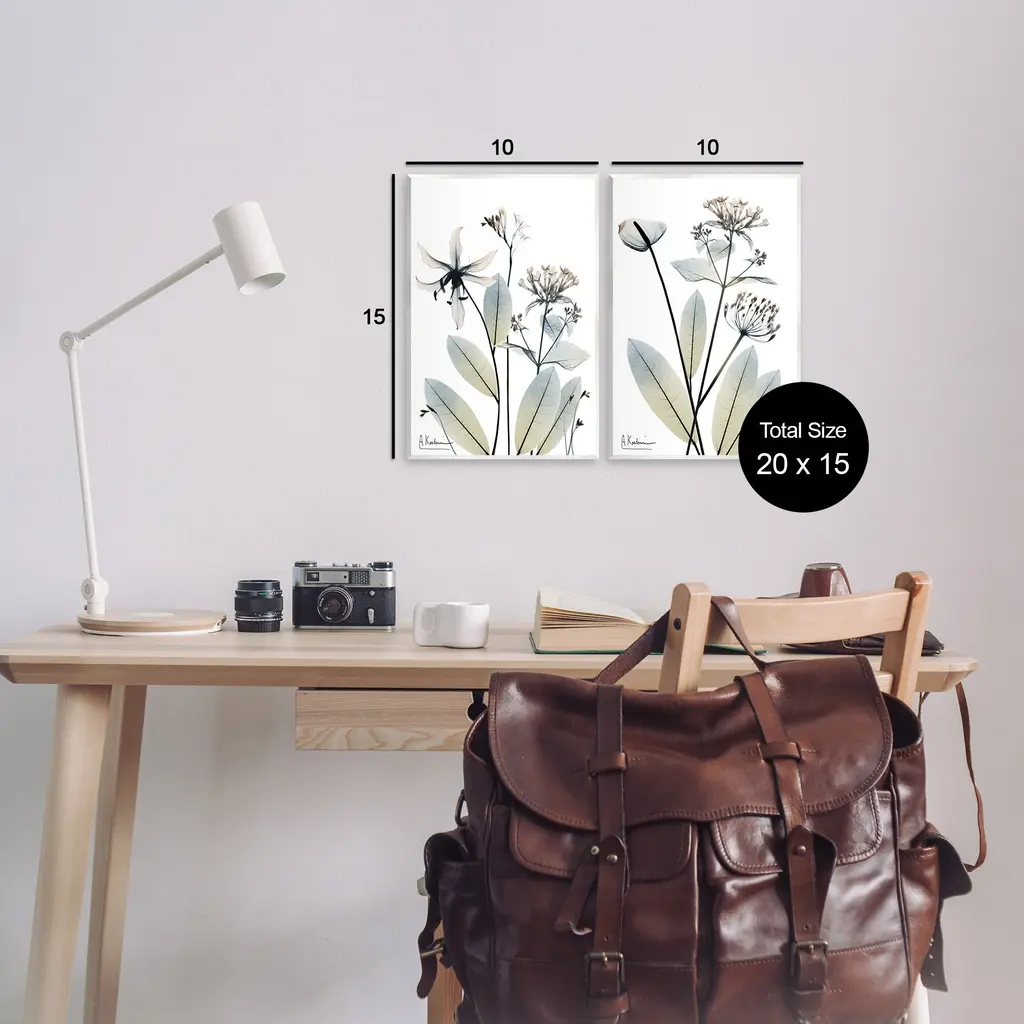 Fill any space with Stupell Wall Art Sets. Our wall plaques start as high-quality lithograph prints mounted on durable 0.5-inch thick MDF wood. Each piece is hand finished and comes with a fresh layer of white foil on the sides to give it a crisp, clean look. Plaques arrive ready to hang without installation and come with removable plastic corners to keep them from damage in transit. Stupell Wall Art is made in the USA.Features: Dimensions: 2 Piece Set, Each Panel is 10 x 0.5 x 15 InchesTwo Piece Wall Plaque Sets are available as 10"x15" or 13"x19" Panels. All Wall Art Plaques have a 0.5" Depth.Wall Art is Ready to Hang with Hardware Free Hanging. No installation required. For Easy Set Up Lean or Layer Artwork on Shelf or Against Wall.All of our wall plaques start off as high quality lithograph prints that are then mounted on durable 0.5 inch thick MDF wood. Each piece is hand finished and comes with a fresh layer of foil on the sides to give it a crisp clean look. Made In USA.Artwork Relates To: Flower, Plant, Abstract, Modern, X-Ray, Blossom, Leaf, NatureDesign by Albert Koetsier