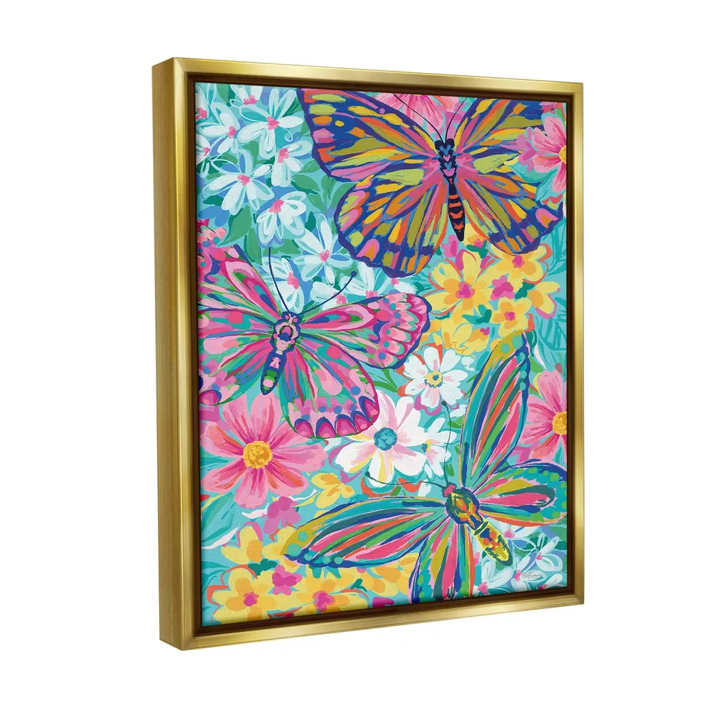 Elevate your home or office to the next level with Stupell Framed Floating Canvas Wall Art. Our premium hand-stretched canvas is mounted securely into a sturdy lightweight frame. The museum-style gap between the wrapped canvas and the box frame gives the illusion of floating artwork. Stupell Wall Art is made in the USA.Features: Dimensions: 17 x 1.7 x 21 Frame, 16 x 1.5 x 20 Canvas ArtFloating Frame Canvas Products are available in sizes 17"x21" and 25"x31". All Floating Frame Canvas Products have a 1.7" Depth.Wall Art is Ready to Hang with Hardware Free Hanging. No Installation required. For Easy Set Up Lean or Layer Artwork on Shelf or Against Wall. Artwork is Permently Fixed into the Frame.Our elevated 1.7" Thick Floating Frame is the perfect complement to our canvas style Wall Art. We use only the highest quality inks in house with industry leading printing solutions. Canvas is hand stretched over a durable wood foundation and then mounted securly into a Modern Box Frame. Made in the USA.Artwork Relates To: Floral, Pattern, Modern, Collage, Nature, Flower, Blossom, Butterfly, Insect, Bug, Abstract, ModernDesign by Cat Thurman Designs
