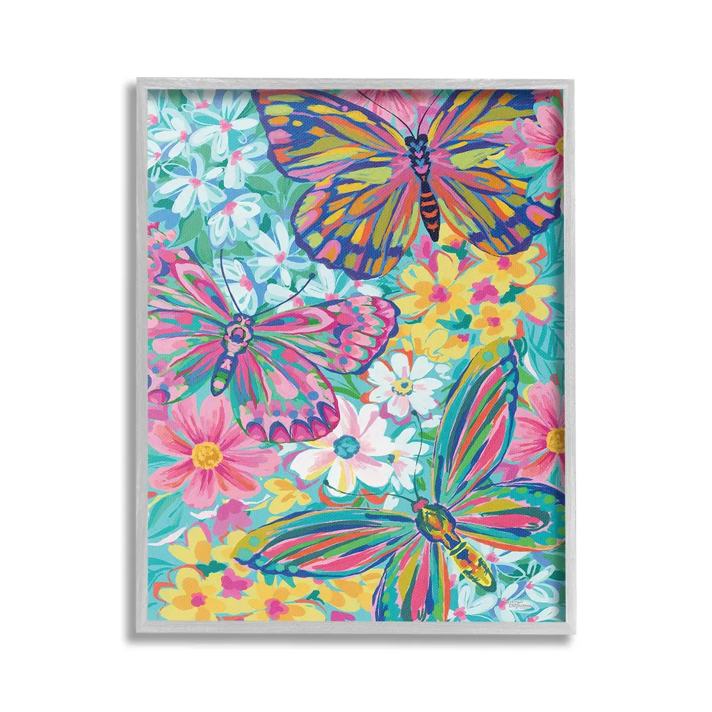 Add dimension to any room with our textured Framed Giclee Artwork. Our framed artwork is securely mounted into a 1.5-inch thick wood grain frame and ready to hang. Frames are available in three alluring styles: black, gray farmhouse and white. In addition, you should check out our oversized options if you want a statement piece. Stupell Wall Art is made in the USA.Features: Dimensions: 11 x 1.5 x 14 FramedFramed Giclee Products are available in the sizes 11"x14", 16"x20" or 24"x30". All Framed Giclee Products have a 1.5" Depth. Wall Art is Ready to Hang with Hardware Free Hanging. No installation required. For Easy Set Up Lean or Layer Artwork on Shelf or Against Wall.Our giclée prints are carefully mounted on a durable MDF backing, and then perfectly finished in a 1.5 inch thick woodgrain frame. Mounted frame colors include black, gray farmhouse and white. Made In USA.Artwork Relates To: Floral, Pattern, Modern, Collage, Nature, Flower, Blossom, Butterfly, Insect, Bug, Abstract, ModernDesign by Cat Thurman Designs