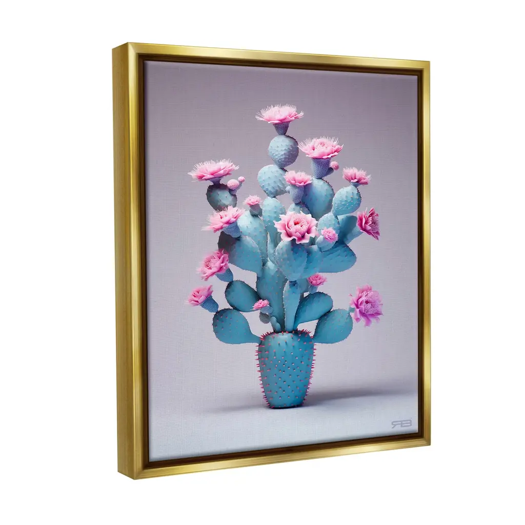 Stupell Modern Cactus With Flowers Framed Floater Canvas Wall Art Design By Rb - 17 X 21 - Gold
