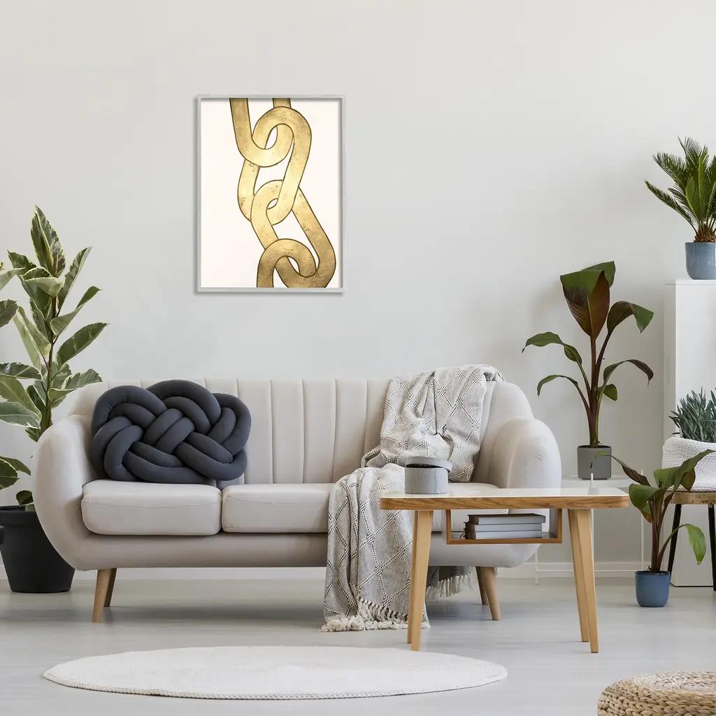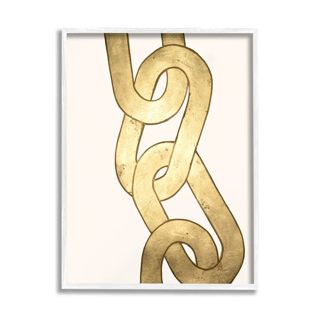 Add dimension to any room with our textured Framed Giclee Artwork. Our framed artwork is securely mounted into a 1.5-inch thick wood grain frame and ready to hang. Frames are available in three alluring styles: black, gray farmhouse and white. In addition, you should check out our oversized options if you want a statement piece. Stupell Wall Art is made in the USA.Features: Dimensions: 11 x 1.5 x 14 FramedFramed Giclee Sizes Include Standard: 11 x 1.5 x 14 Large: 16 x 1.5 x 20 Oversized: 24 x 1.5 x 30Wall Art is Ready to Hang - No Installation or Hardware Needed. For Easy Set Up Lean or Layer Artwork on Shelf or Against Wall.Our giclée prints are carefully mounted on a durable MDF backing, and then perfectly finished in a 1.5 inch thick woodgrain frame. Mounted frame colors include black, gray farmhouse and white. Made In USA.Artwork Relates To: Abstract, Modern, Contemporary, Chain, LinksDesign by Vanna Lam
