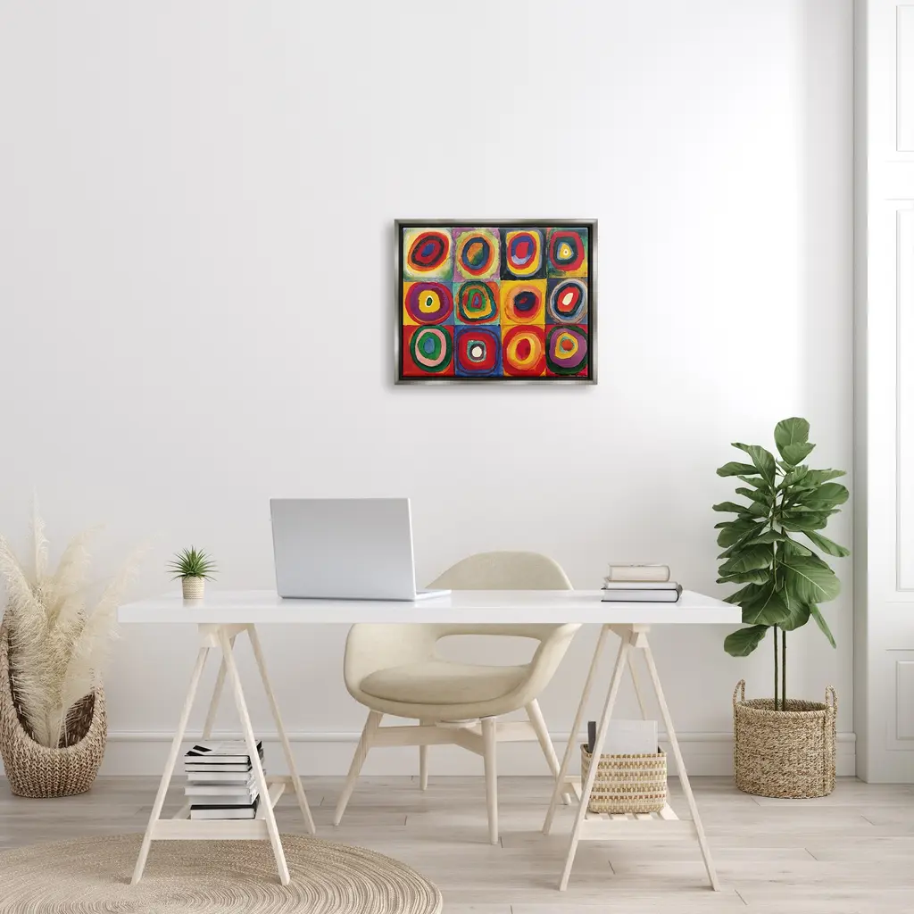 Elevate your home or office to the next level with Stupell Framed Floating Canvas Wall Art. Our premium hand stretched canvas is mounted securely into a sturdy lightweight frame. The museum style gap between wrapped canvas and box frame gives the illusion of floating artwork.Features: Wall Art is Ready to Hang - No Installation or Hardware Needed. For Easy Set Up Lean or Layer Artwork on Shelf or Against Wall.Our elevated 1.7" Thick Floating Frame is the perfect complement to our canvas style Wall Art. We use only the highest quality inks in house with industry leading printing solutions. Canvas is hand stretched over a durable wood foundation and then mounted securely into a Modern Box Frame. Made in the USA.Artwork Relates To: Modern Art; Pattern, ShapesDesign by Wassily Kandinsky