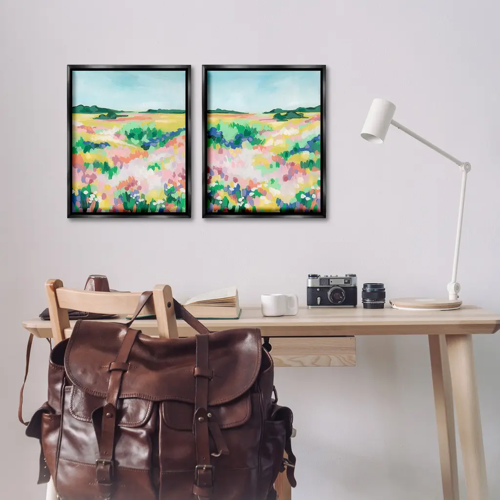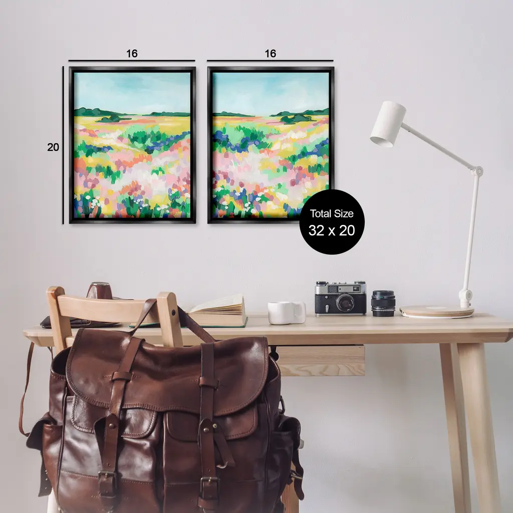 Elevate your home or office to the next level with Stupell Framed Floating Canvas Wall Art. Our premium hand-stretched canvas is mounted securely into a sturdy lightweight frame. The museum-style gap between the wrapped canvas and the box frame gives the illusion of floating artwork. Stupell Wall Art is made in the USA.Features: Dimensions: 2 Piece Set, Each Frame is 17 x 1.7 x 21Two Piece Floater Framed Canvas are available as 17x21 or 25x31 Panels. All Floater Frame Products have a 1.7" Depth.Wall Art is Ready to Hang with Hardware Free Hanging. No Installation required. For Easy Set Up Lean or Layer Artwork on Shelf or Against Wall. Artwork is Permently Fixed into the Frame.Our elevated 1.7" Thick Floating Frame is the perfect complement to our canvas style Wall Art. We use only the highest quality inks in house with industry leading printing solutions. Canvas is hand stretched over a durable wood foundation and then mounted securly into a Modern Box Frame. Made in the USA.Artwork Relates To: Painting, Field, Grassland, Nature, Modern, Meadow, Countryside, Abstract, LandscapeDesign by June Erica Vess