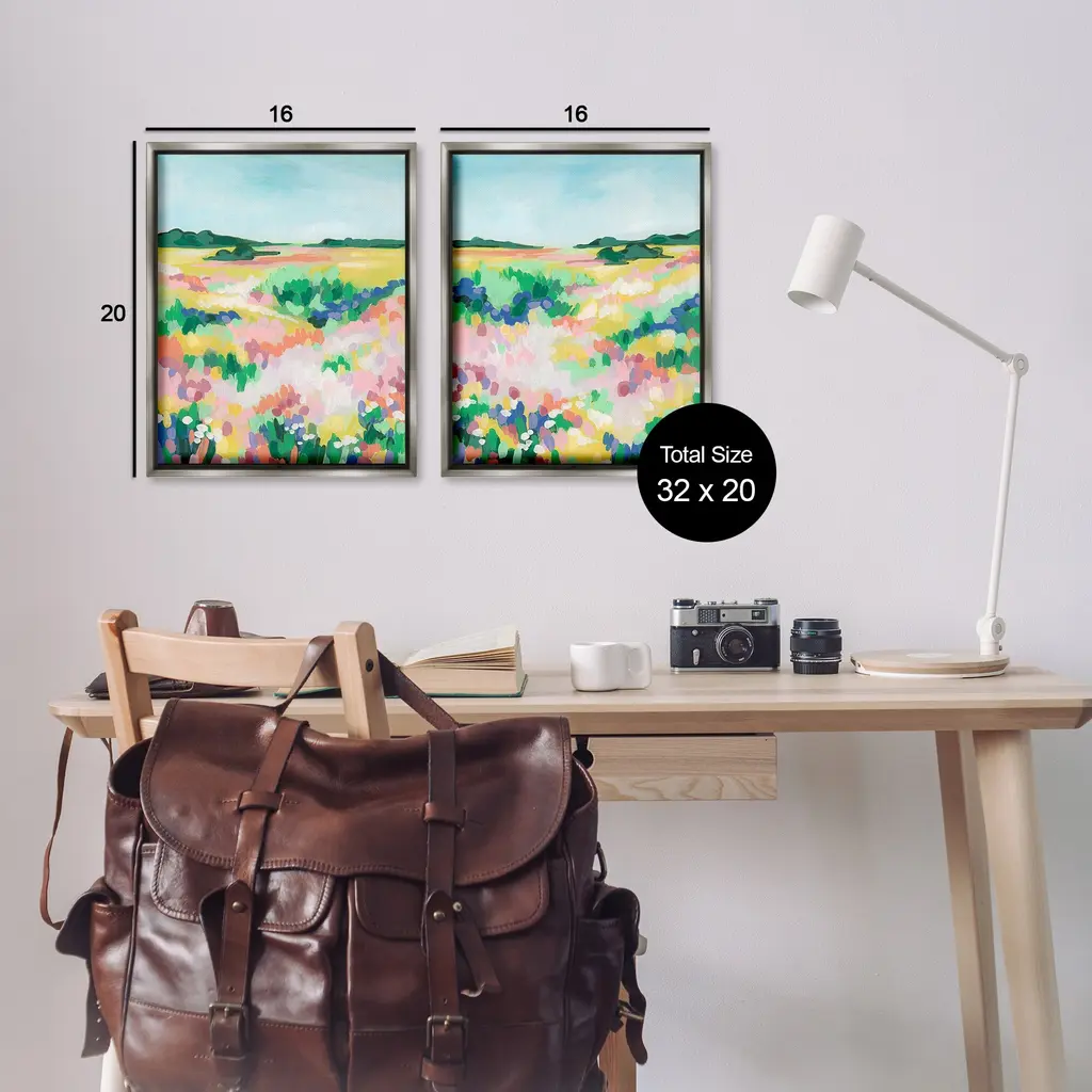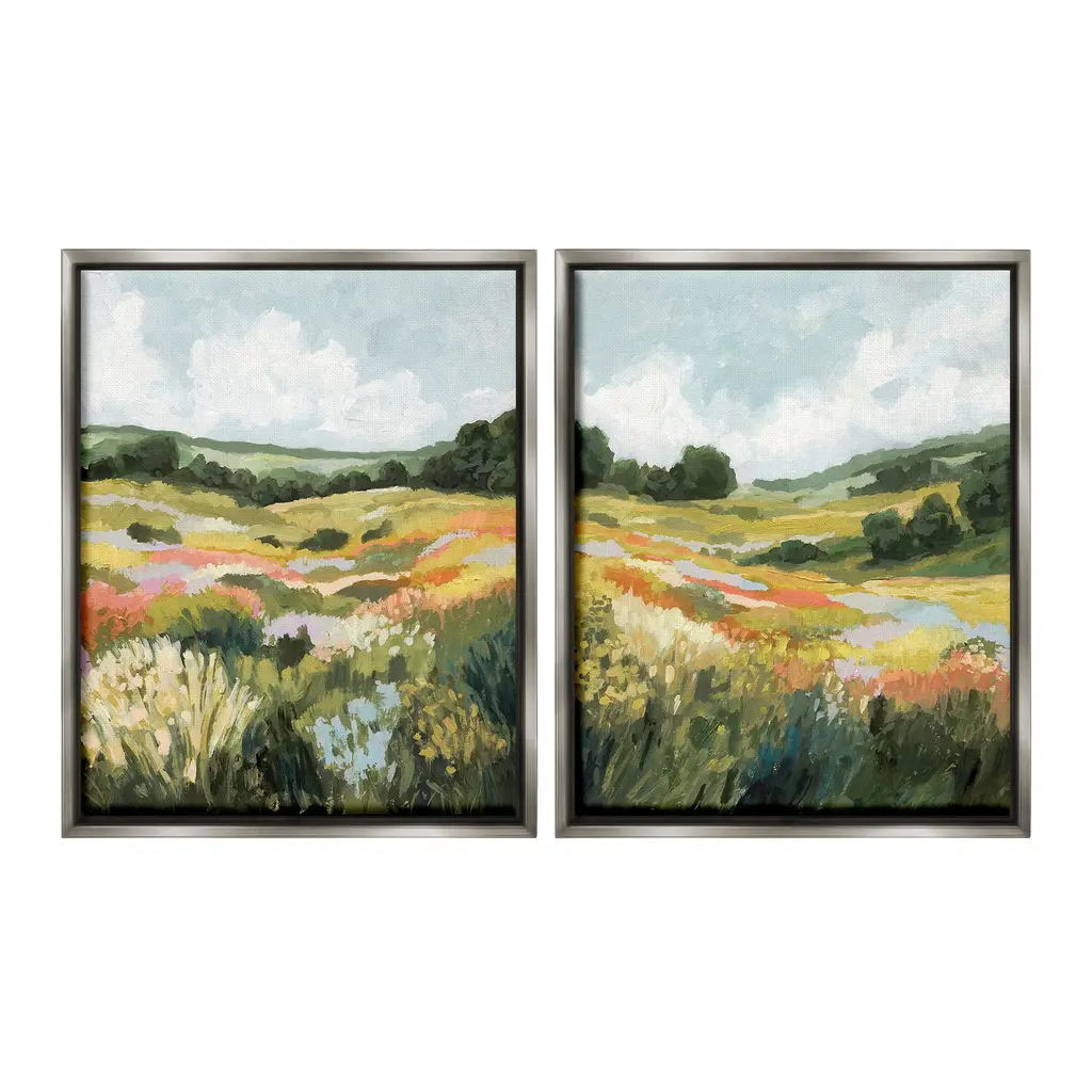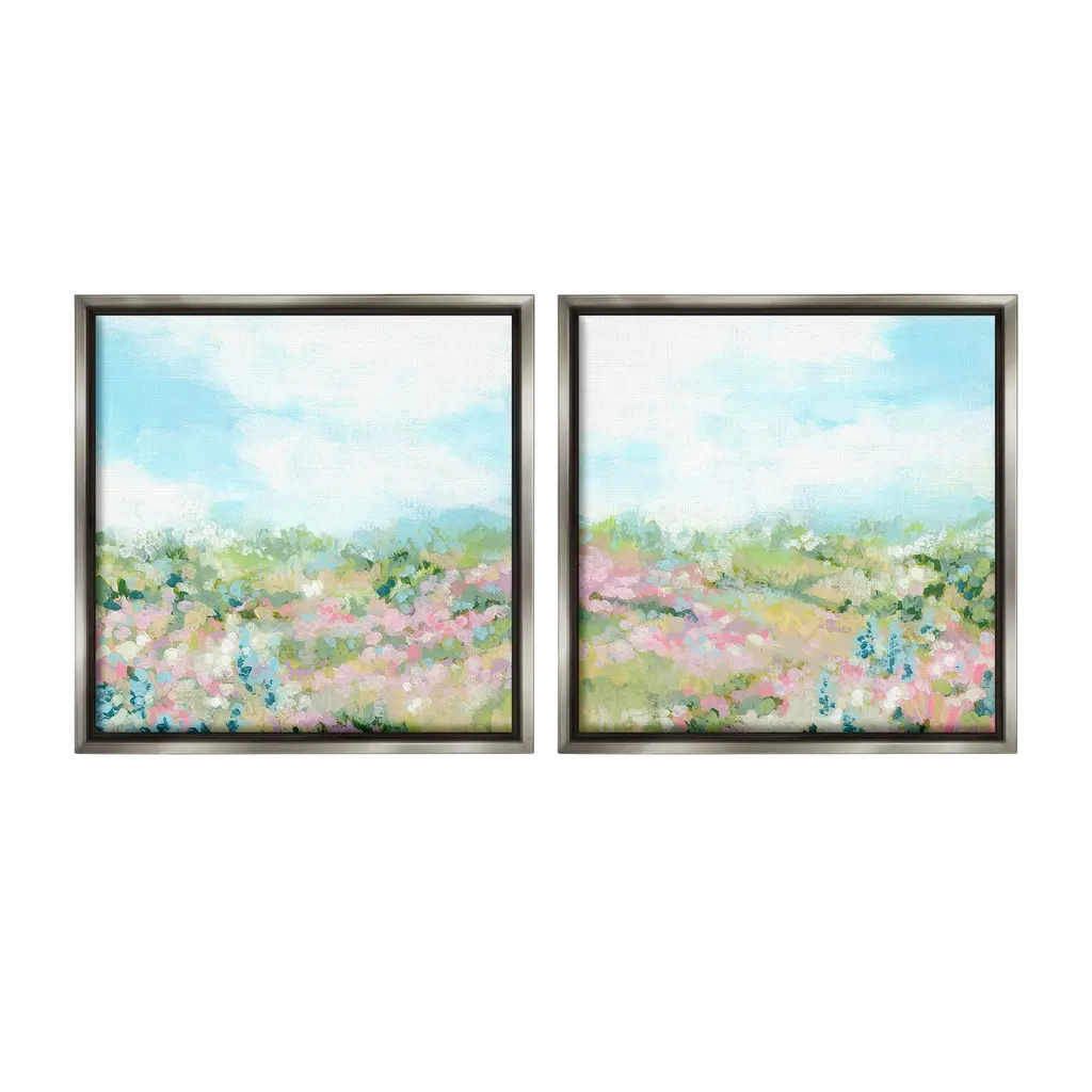 Elevate your home or office to the next level with Stupell Framed Floating Canvas Wall Art. Our premium hand-stretched canvas is mounted securely into a sturdy lightweight frame. The museum-style gap between the wrapped canvas and the box frame gives the illusion of floating artwork. Stupell Wall Art is made in the USA.Features: Dimensions: 2 Piece Set, Each Frame is 17 x 1.7 x 21Two Piece Floater Framed Canvas are available as 17x21 or 25x31 Panels. All Floater Frame Products have a 1.7" Depth.Wall Art is Ready to Hang with Hardware Free Hanging. No Installation required. For Easy Set Up Lean or Layer Artwork on Shelf or Against Wall. Artwork is Permently Fixed into the Frame.Our elevated 1.7" Thick Floating Frame is the perfect complement to our canvas style Wall Art. We use only the highest quality inks in house with industry leading printing solutions. Canvas is hand stretched over a durable wood foundation and then mounted securly into a Modern Box Frame. Made in the USA.Artwork Relates To: Painting, Field, Grassland, Nature, Modern, Meadow, Countryside, Abstract, LandscapeDesign by June Erica Vess