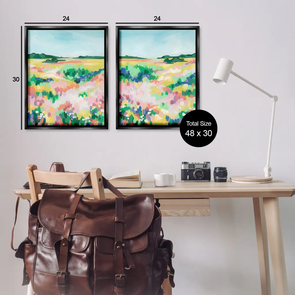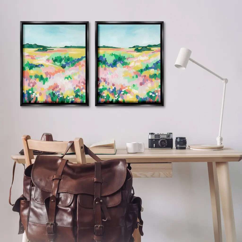 Elevate your home or office to the next level with Stupell Framed Floating Canvas Wall Art. Our premium hand-stretched canvas is mounted securely into a sturdy lightweight frame. The museum-style gap between the wrapped canvas and the box frame gives the illusion of floating artwork. Stupell Wall Art is made in the USA.Features: Dimensions: 2 Piece Set, Each Frame is 17 x 1.7 x 21Two Piece Floater Framed Canvas are available as 17x21 or 25x31 Panels. All Floater Frame Products have a 1.7" Depth.Wall Art is Ready to Hang with Hardware Free Hanging. No Installation required. For Easy Set Up Lean or Layer Artwork on Shelf or Against Wall. Artwork is Permently Fixed into the Frame.Our elevated 1.7" Thick Floating Frame is the perfect complement to our canvas style Wall Art. We use only the highest quality inks in house with industry leading printing solutions. Canvas is hand stretched over a durable wood foundation and then mounted securly into a Modern Box Frame. Made in the USA.Artwork Relates To: Painting, Field, Grassland, Nature, Modern, Meadow, Countryside, Abstract, LandscapeDesign by June Erica Vess