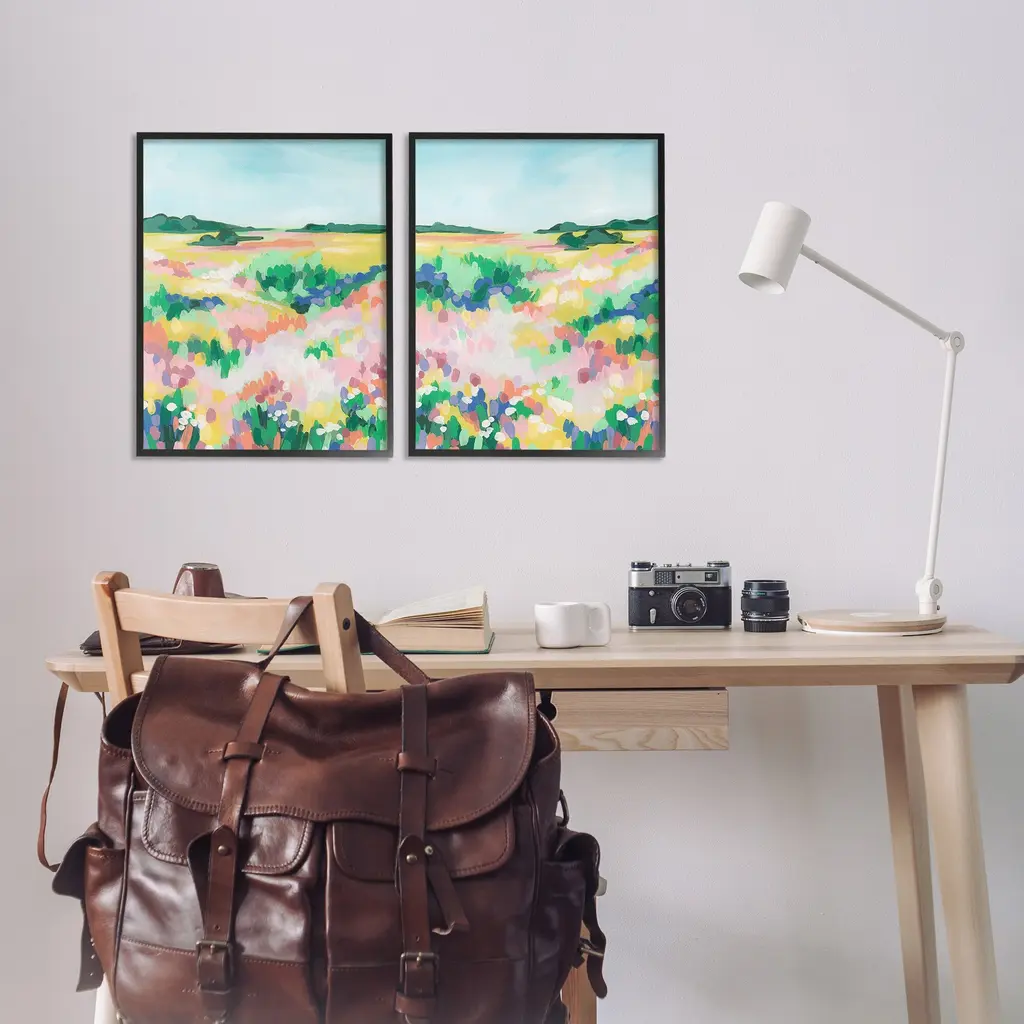 Fill any space in your home or office with our Framed Wall Art Sets. Our framed artwork is securely mounted into a 1.5-inch thick wood grain frame and ready to hang. Frames are available in three alluring styles: black, gray farmhouse and white. Stupell Wall Art is made in the USA.Features: Dimensions: 2 Piece Set, Each Panel is 11 x 1.5 x 14 FramedTwo Piece Framed Giclee Sets are available as 11"x14", 16"x20" or 24"x30" Panels. All Framed Giclee Products have a 1.5" Depth.Wall Art is Ready to Hang with Hardware Free Hanging. No installation required. For Easy Set Up Lean or Layer Artwork on Shelf or Against Wall.Curated Wall Art Sets make it easy for you complete the theme for any room. Our giclée prints are carefully mounted on a durable MDF backing, and then perfectly finished in a 1.5 inch thick woodgrain frame. Mounted frame colors include black, gray farmhouse and white. Made In USA.Artwork Relates To: Painting, Field, Grassland, Nature, Modern, Meadow, Countryside, Abstract, LandscapeDesign by June Erica Vess