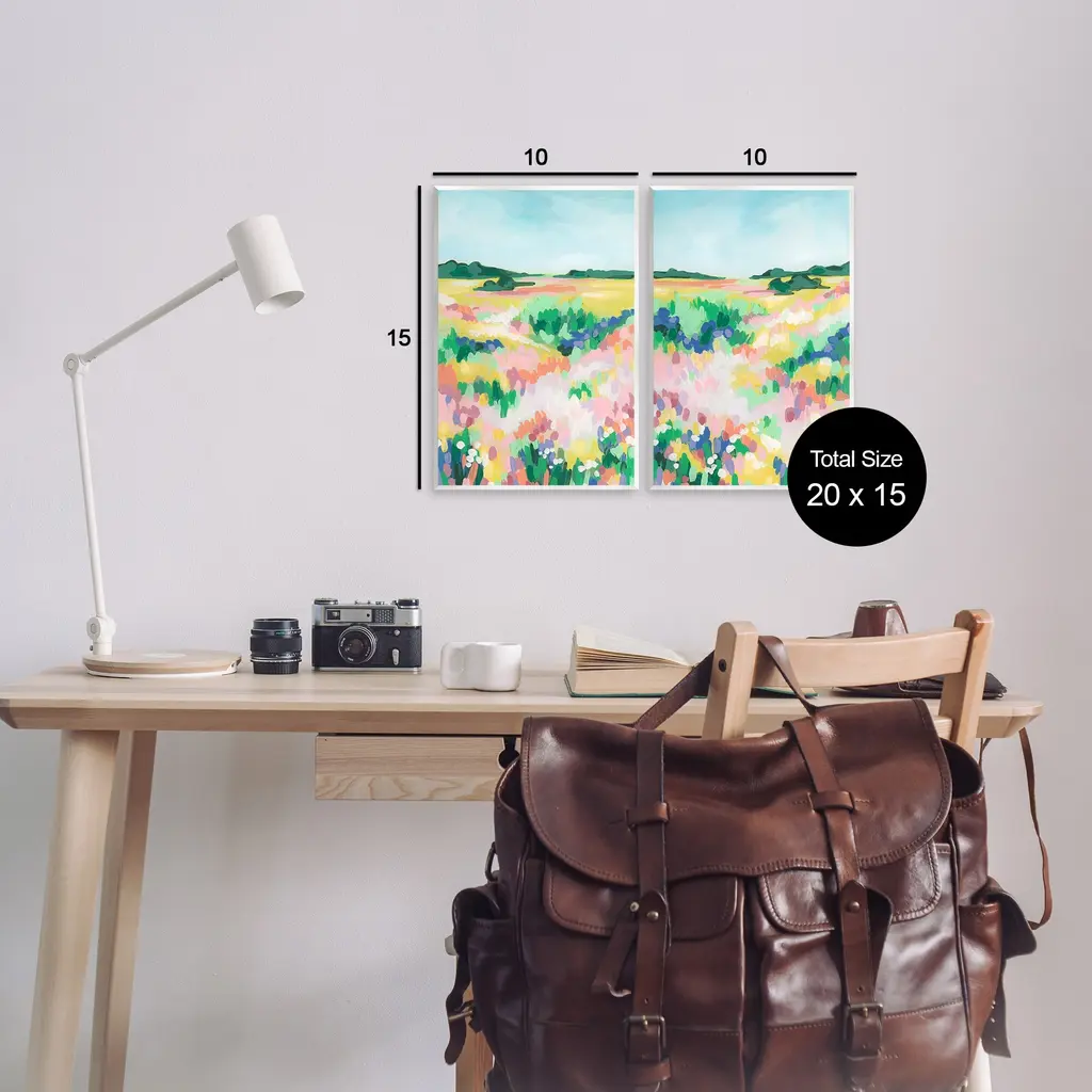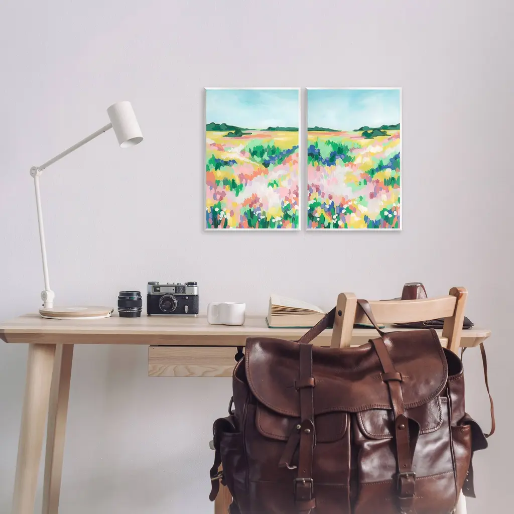 Fill any space with Stupell Wall Art Sets. Our wall plaques start as high-quality lithograph prints mounted on durable 0.5-inch thick MDF wood. Each piece is hand finished and comes with a fresh layer of white foil on the sides to give it a crisp, clean look. Plaques arrive ready to hang without installation and come with removable plastic corners to keep them from damage in transit. Stupell Wall Art is made in the USA.Features: Dimensions: 2 Piece Set, Each Panel is 10 x 0.5 x 15 InchesTwo Piece Wall Plaque Sets are available as 10"x15" or 13"x19" Panels. All Wall Art Plaques have a 0.5" Depth.Wall Art is Ready to Hang with Hardware Free Hanging. No installation required. For Easy Set Up Lean or Layer Artwork on Shelf or Against Wall.All of our wall plaques start off as high quality lithograph prints that are then mounted on durable 0.5 inch thick MDF wood. Each piece is hand finished and comes with a fresh layer of foil on the sides to give it a crisp clean look. Made In USA.Artwork Relates To: Painting, Field, Grassland, Nature, Modern, Meadow, Countryside, Abstract, LandscapeDesign by June Erica Vess