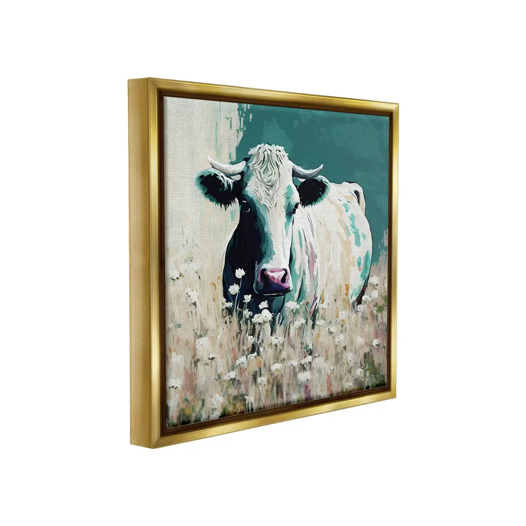 Elevate your home or office to the next level with Stupell Framed Floating Canvas Wall Art. Our premium hand-stretched canvas is mounted securely into a sturdy lightweight frame. The museum-style gap between the wrapped canvas and the box frame gives the illusion of floating artwork. Stupell Wall Art is made in the USA.Features: Dimensions: 18 x 1.7 x 18 Frame, 17 x 1.5 x 17 Canvas ArtFloating Frame Canvas Products are available in sizes 18"x18" and 25"x25". All Floating Frame Canvas Products have a 1.7" Depth.Wall Art is Ready to Hang with Hardware Free Hanging. No Installation required. For Easy Set Up Lean or Layer Artwork on Shelf or Against Wall. Artwork is Permently Fixed into the Frame.Our elevated 1.7" Thick Floating Frame is the perfect complement to our canvas style Wall Art. We use only the highest quality inks in house with industry leading printing solutions. Canvas is hand stretched over a durable wood foundation and then mounted securly into a Modern Box Frame. Made in the USA.Artwork Relates To: Painting, Animal, Mammal, Abstract, Modern, Farm, Country, Cow, CattleDesign by Seven Trees Design