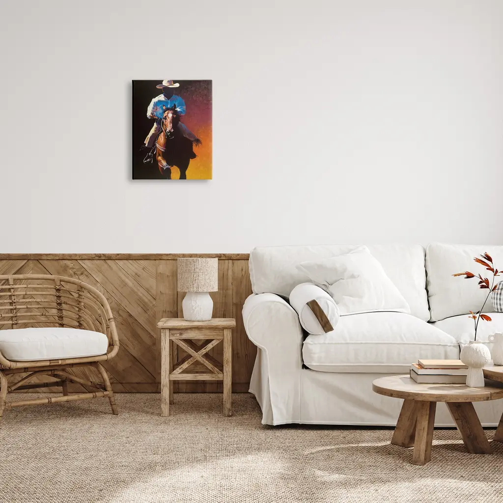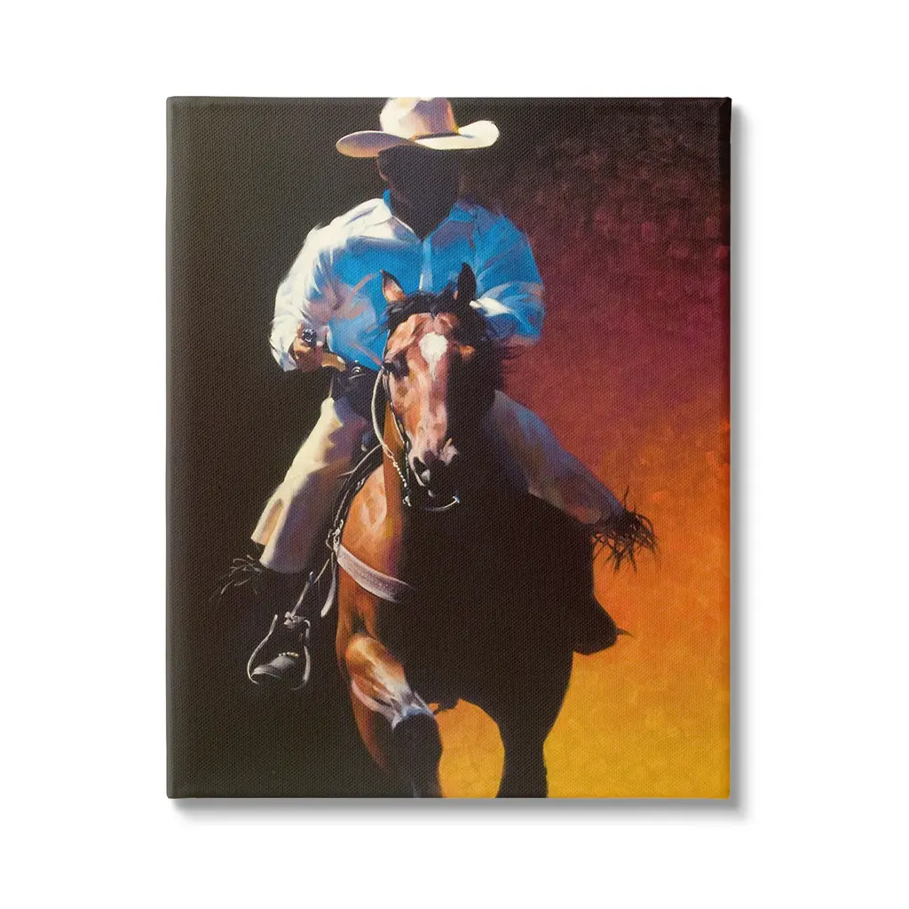 We create our stretched canvas to the highest standards. Using only the highest quality inks and canvas on Mimaki printers, we hand-cut and stretch each piece over a 1.5-inch thick wooden frame for hanging. As a result, the art comes ready to hang on the sturdy ledge with no installation required. Stupell Wall Art is made in the USA.Features: Dimensions: 16 x 1.5 x 20 InchesStretched Canvas Sizes Include Standard: 16 x 1.5 x 20 Large: 20 x 1.5 x 30 X-Large: 30 x 1.5 x 40 Oversized: 36 x 1.5 x 48Wall Art is Ready to Hang with Hardware Free Hanging. No installation required. For Easy Set Up Lean or Layer Artwork on Shelf or Against Wall.Our stretched canvas is created with the highest standards. We use only the highest quality inks and canvas on our in house Mimaki printers, and then hand cut and stretch each piece over a 1.5 inch thick wooden frame for hanging. Made In USA.Artwork Relates To: Person, Animal, Horse, Mammal, Horseback Riding, Equestrian, Painting, Halter, Cowboy, Southwestern, CountryDesign by Julie T. Chapman