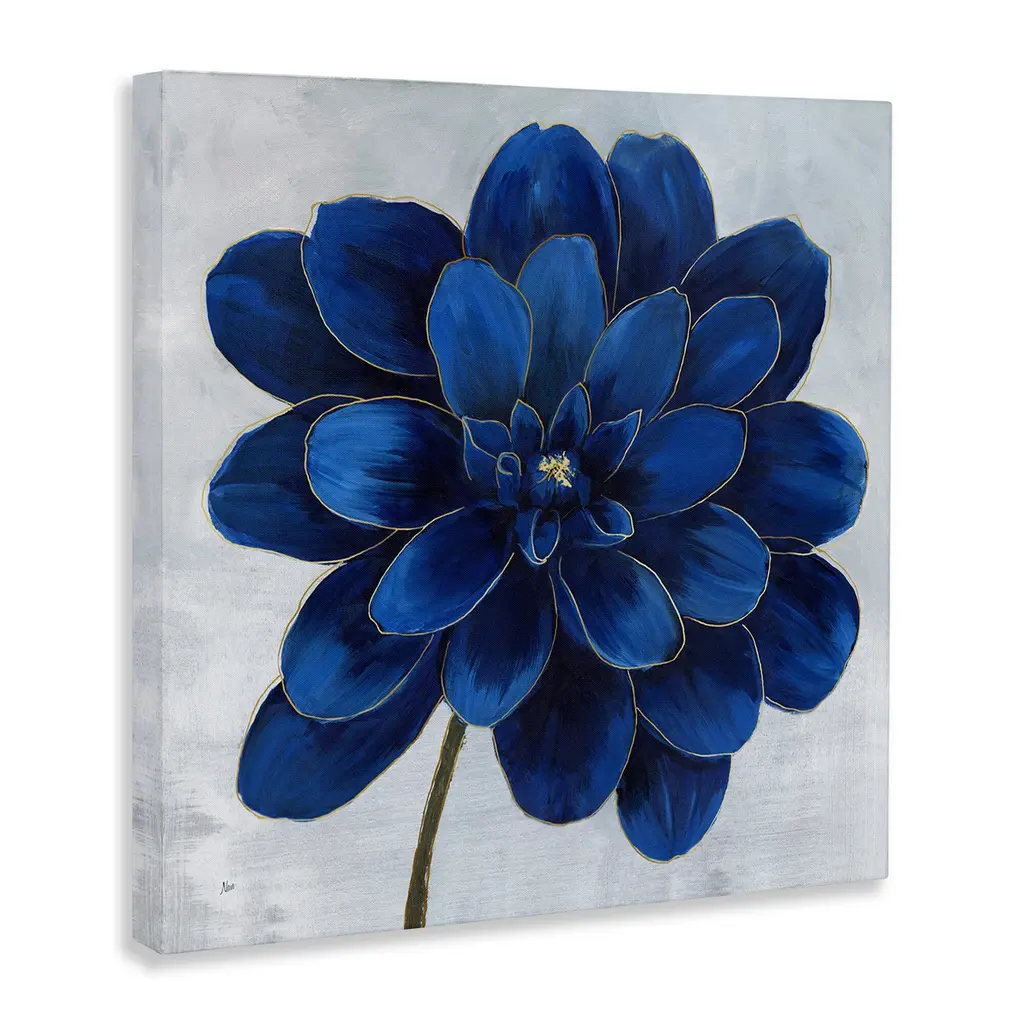 Stupell Modern Deep Blue Floral Carnation Flower Petal Outline Canvas Wall Art - 17 X 17