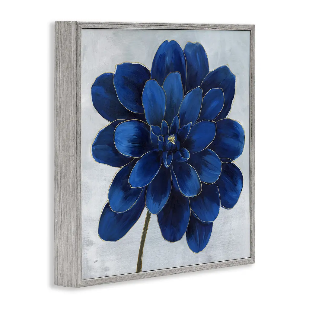 Stupell Modern Deep Blue Floral Carnation Flower Petal Outline Framed Wall Art - 17 X 17 - Grey