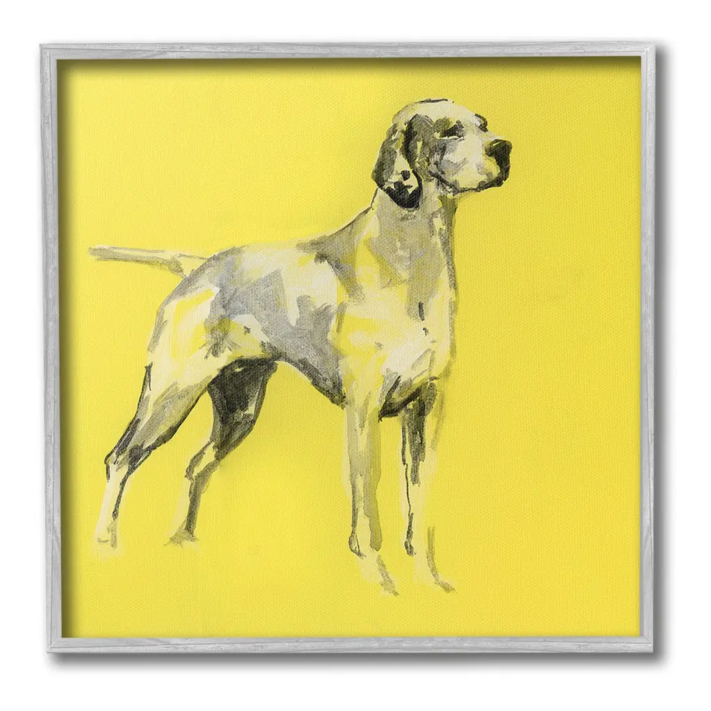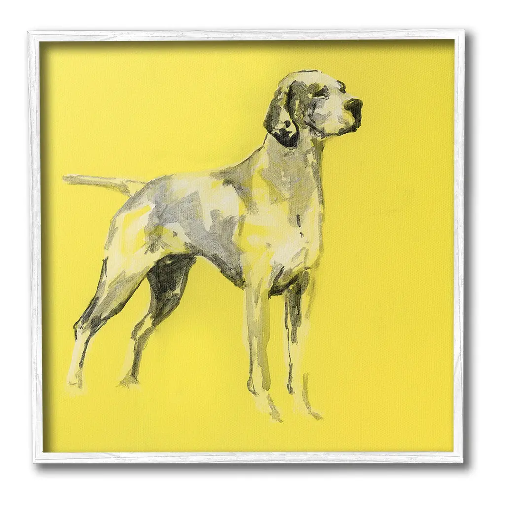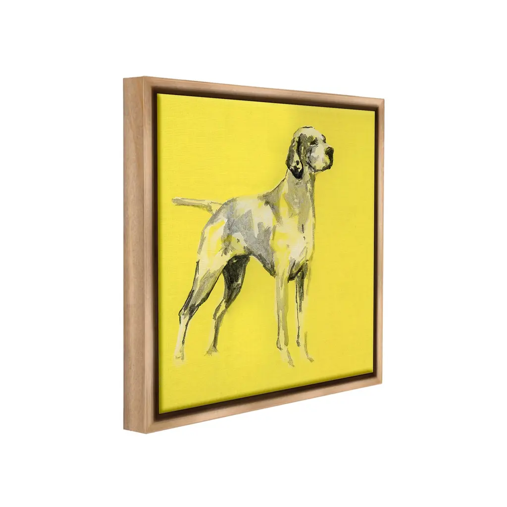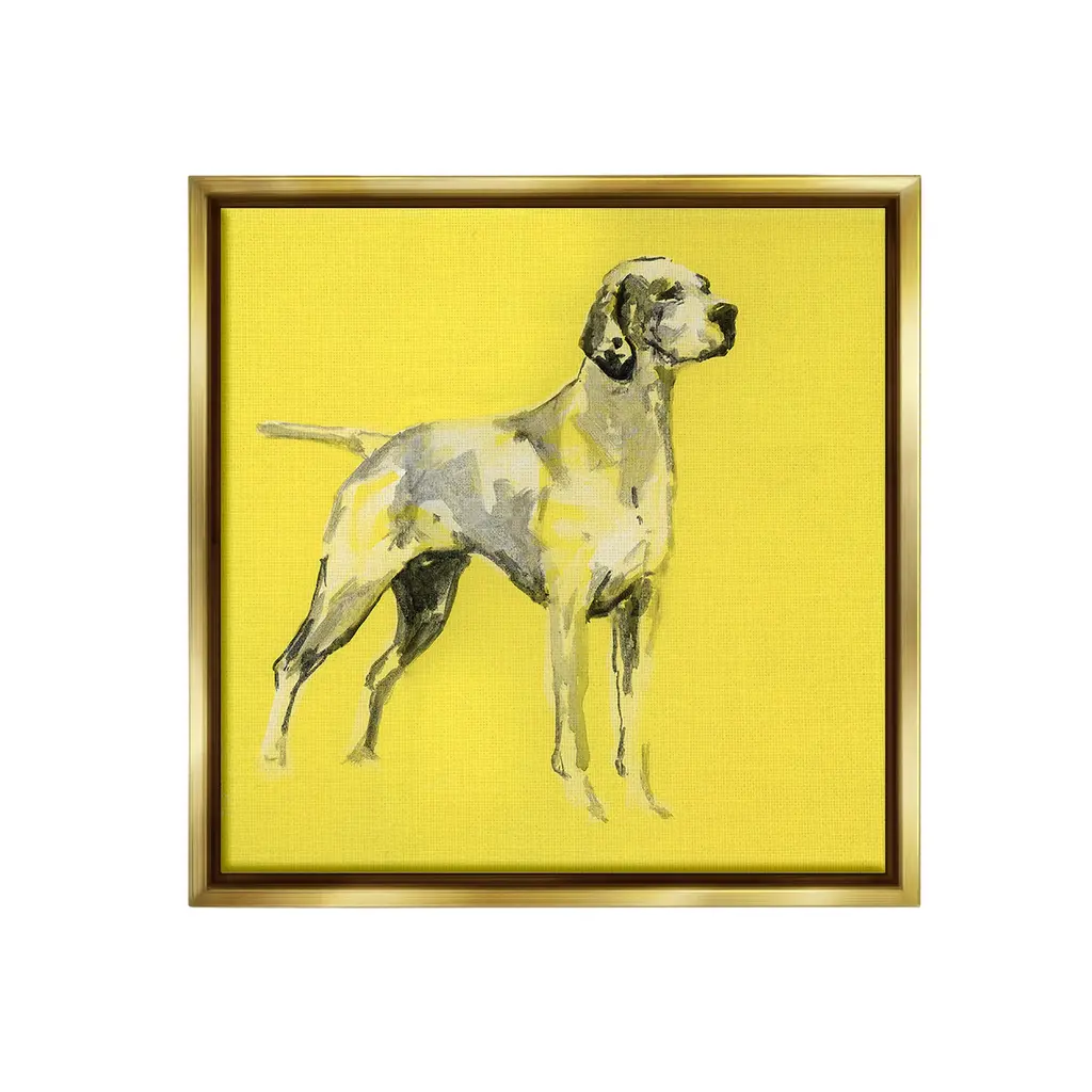 Stupell Modern Dog On Yellow Framed Floater Canvas Wall Art Design By Cartissi - 18 X 18 - Brown
