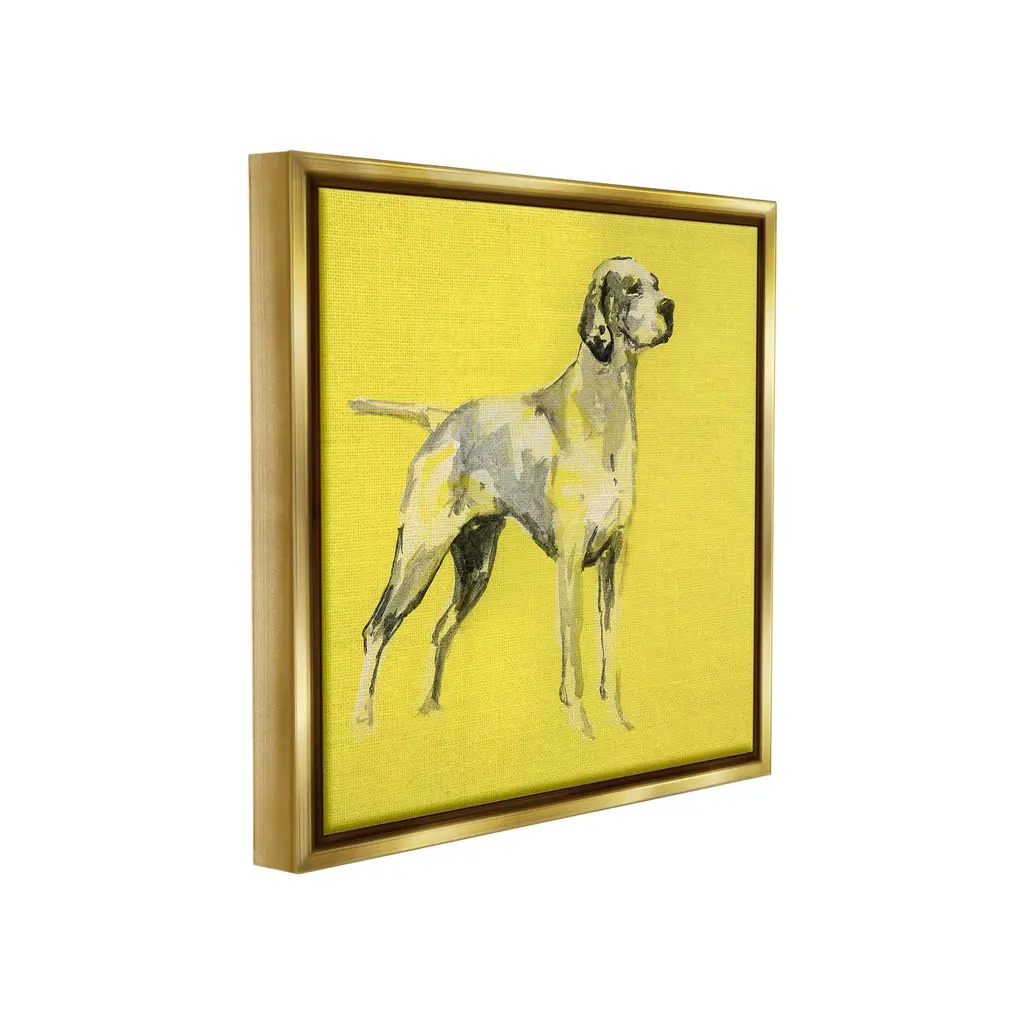 Stupell Modern Dog On Yellow Framed Floater Canvas Wall Art Design By Cartissi - 25 X 25 - Gold