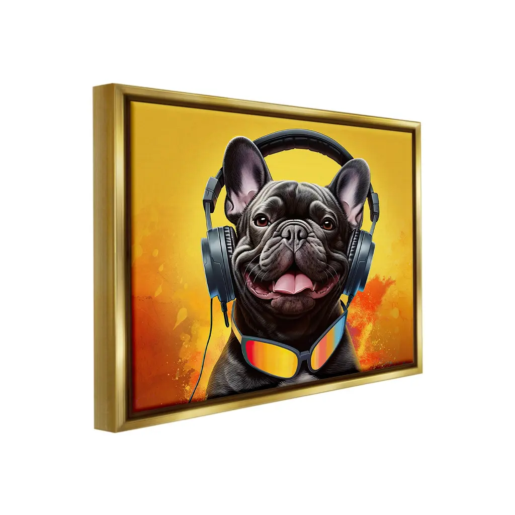 Elevate your home or office to the next level with Stupell Framed Floating Canvas Wall Art. Our premium hand-stretched canvas is mounted securely into a sturdy lightweight frame. The museum-style gap between the wrapped canvas and the box frame gives the illusion of floating artwork. Stupell Wall Art is made in the USA.Features: Dimensions: 21 x 1.7 x 17 Frame, 20 x 1.5 x 16 Canvas ArtFloating Frame Canvas Products are available in sizes 21"x17" and 31"x25". All Floating Frame Canvas Products have a 1.7" Depth.Wall Art is Ready to Hang with Hardware Free Hanging. No Installation required. For Easy Set Up Lean or Layer Artwork on Shelf or Against Wall. Artwork is Permently Fixed into the Frame.Our elevated 1.7" Thick Floating Frame is the perfect complement to our canvas style Wall Art. We use only the highest quality inks in house with industry leading printing solutions. Canvas is hand stretched over a durable wood foundation and then mounted securly into a Modern Box Frame. Made in the USA.Artwork Relates To: Animal, Canine, Dog, Mammal, Pet, Humor, Funny, Headphones, MusicDesign by Jim Baldwin