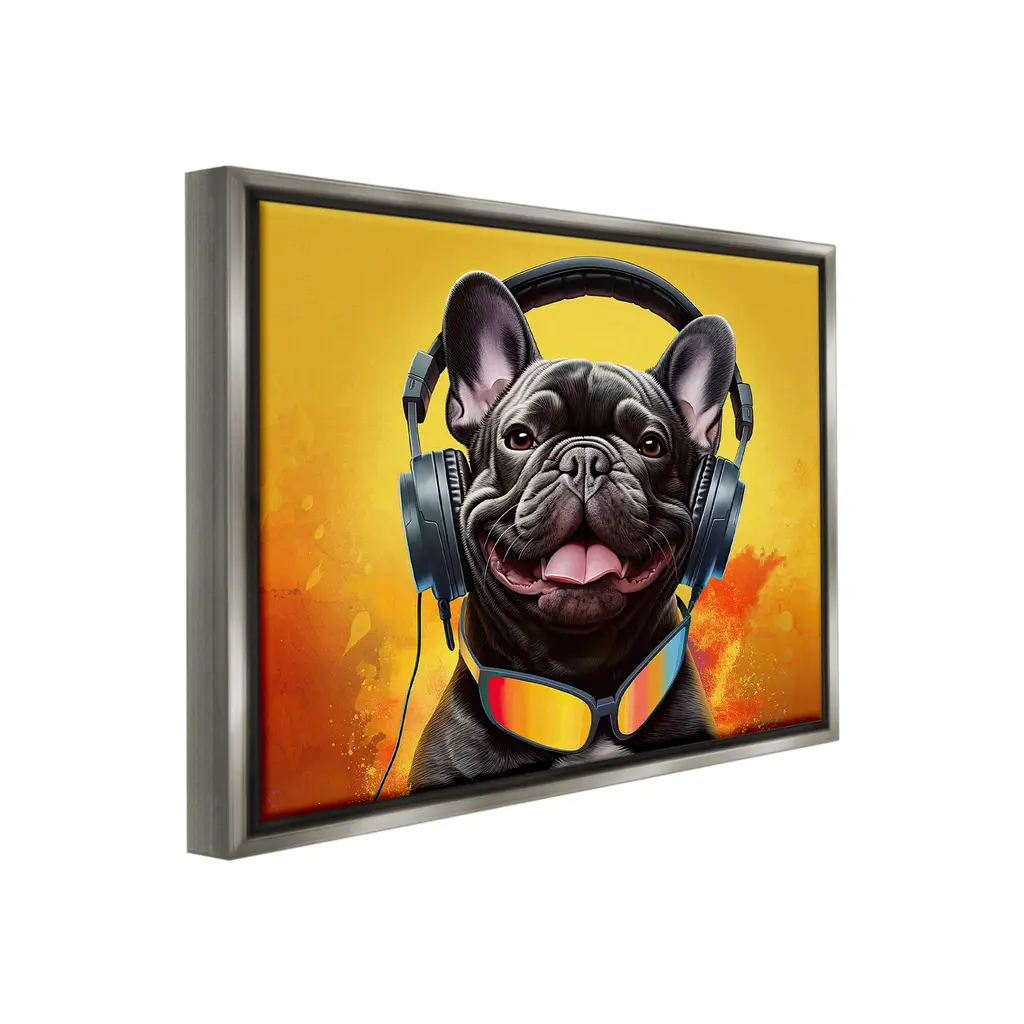 Elevate your home or office to the next level with Stupell Framed Floating Canvas Wall Art. Our premium hand-stretched canvas is mounted securely into a sturdy lightweight frame. The museum-style gap between the wrapped canvas and the box frame gives the illusion of floating artwork. Stupell Wall Art is made in the USA.Features: Dimensions: 21 x 1.7 x 17 Frame, 20 x 1.5 x 16 Canvas ArtFloating Frame Canvas Products are available in sizes 21"x17" and 31"x25". All Floating Frame Canvas Products have a 1.7" Depth.Wall Art is Ready to Hang with Hardware Free Hanging. No Installation required. For Easy Set Up Lean or Layer Artwork on Shelf or Against Wall. Artwork is Permently Fixed into the Frame.Our elevated 1.7" Thick Floating Frame is the perfect complement to our canvas style Wall Art. We use only the highest quality inks in house with industry leading printing solutions. Canvas is hand stretched over a durable wood foundation and then mounted securly into a Modern Box Frame. Made in the USA.Artwork Relates To: Animal, Canine, Dog, Mammal, Pet, Humor, Funny, Headphones, MusicDesign by Jim Baldwin