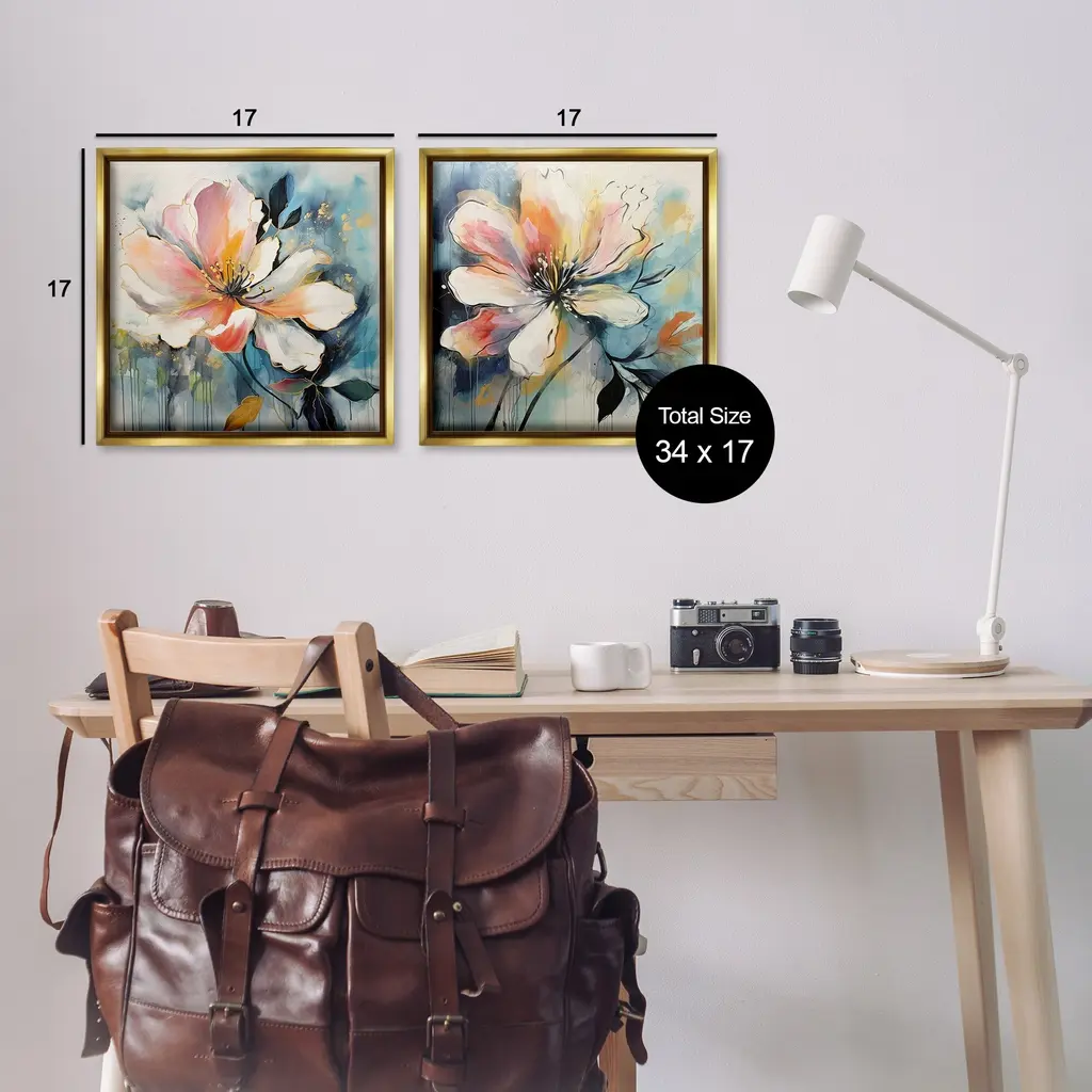 Elevate your home or office to the next level with Stupell Framed Floating Canvas Wall Art. Our premium hand-stretched canvas is mounted securely into a sturdy lightweight frame. The museum-style gap between the wrapped canvas and the box frame gives the illusion of floating artwork. Stupell Wall Art is made in the USA.Features: Dimensions: 2 Piece Set, Each Frame is 18 x 1.7 x 18Two Piece Floating Frame Canvas Products are available as 18"x18" or 25"x25" Panels. All Floating Frame Canvas Products have a 1.7" Depth.Wall Art is Ready to Hang with Hardware Free Hanging. No Installation required. For Easy Set Up Lean or Layer Artwork on Shelf or Against Wall. Artwork is Permently Fixed into the Frame.Our elevated 1.7" Thick Floating Frame is the perfect complement to our canvas style Wall Art. We use only the highest quality inks in house with industry leading printing solutions. Canvas is hand stretched over a durable wood foundation and then mounted securly into a Modern Box Frame. Made in the USA.Artwork Relates To: Floral, Pattern, Flower, Petal, Plant, Botanical, ModernDesign by Lazar Studio