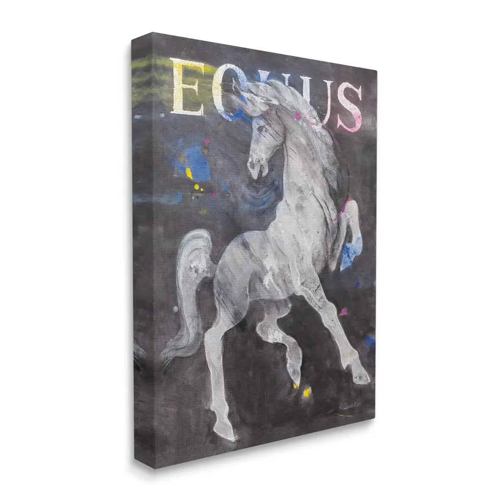 We create our stretched canvas to the highest standards. Using only the highest quality inks and canvas on Mimaki printers, we hand-cut and stretch each piece over a 1.5-inch thick wooden frame for hanging. As a result, the art comes ready to hang on the sturdy ledge with no installation required. Stupell Wall Art is made in the USA.Features: Dimensions: 16 x 1.5 x 20 InchesStretched Canvas Sizes Include Standard: 16 x 1.5 x 20 Large: 20 x 1.5 x 30 X-Large: 30 x 1.5 x 40 Oversized: 36 x 1.5 x 48Wall Art is Ready to Hang with Hardware Free Hanging. No installation required. For Easy Set Up Lean or Layer Artwork on Shelf or Against Wall.Our stretched canvas is created with the highest standards. We use only the highest quality inks and canvas on our in house Mimaki printers, and then hand cut and stretch each piece over a 1.5 inch thick wooden frame for hanging. Made In USA.Artwork Relates To: Animal, Mammal, Horse, Colt Horse, Modern, Andalusian Horse, Foal, StallionDesign by Albena Hristova