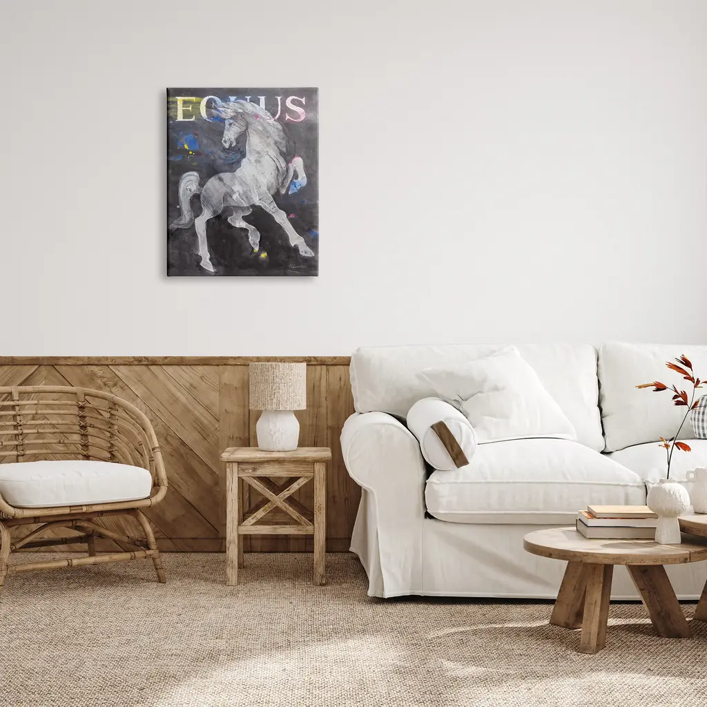 We create our stretched canvas to the highest standards. Using only the highest quality inks and canvas on Mimaki printers, we hand-cut and stretch each piece over a 1.5-inch thick wooden frame for hanging. As a result, the art comes ready to hang on the sturdy ledge with no installation required. Stupell Wall Art is made in the USA.Features: Dimensions: 16 x 1.5 x 20 InchesStretched Canvas Sizes Include Standard: 16 x 1.5 x 20 Large: 20 x 1.5 x 30 X-Large: 30 x 1.5 x 40 Oversized: 36 x 1.5 x 48Wall Art is Ready to Hang with Hardware Free Hanging. No installation required. For Easy Set Up Lean or Layer Artwork on Shelf or Against Wall.Our stretched canvas is created with the highest standards. We use only the highest quality inks and canvas on our in house Mimaki printers, and then hand cut and stretch each piece over a 1.5 inch thick wooden frame for hanging. Made In USA.Artwork Relates To: Animal, Mammal, Horse, Colt Horse, Modern, Andalusian Horse, Foal, StallionDesign by Albena Hristova