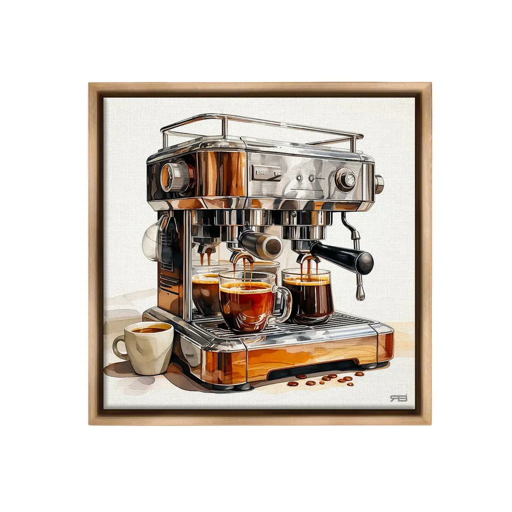 Elevate your home or office to the next level with Stupell Framed Floating Canvas Wall Art. Our premium hand-stretched canvas is mounted securely into a sturdy lightweight frame. The museum-style gap between the wrapped canvas and the box frame gives the illusion of floating artwork. Stupell Wall Art is made in the USA.Features: Dimensions: 17 x 1.7 x 21 Frame, 16 x 1.5 x 20 Canvas ArtFloating Frame Canvas Products are available in sizes 17"x21" and 25"x31". All Floating Frame Canvas Products have a 1.7" Depth.Wall Art is Ready to Hang with Hardware Free Hanging. No Installation required. For Easy Set Up Lean or Layer Artwork on Shelf or Against Wall. Artwork is Permently Fixed into the Frame.Our elevated 1.7" Thick Floating Frame is the perfect complement to our canvas style Wall Art. We use only the highest quality inks in house with industry leading printing solutions. Canvas is hand stretched over a durable wood foundation and then mounted securly into a Modern Box Frame. Made in the USA.Artwork Relates To: Cup, Beverage, Coffee, Coffee Cup, Espresso, Machine, Cafe, KitchenDesign by RB