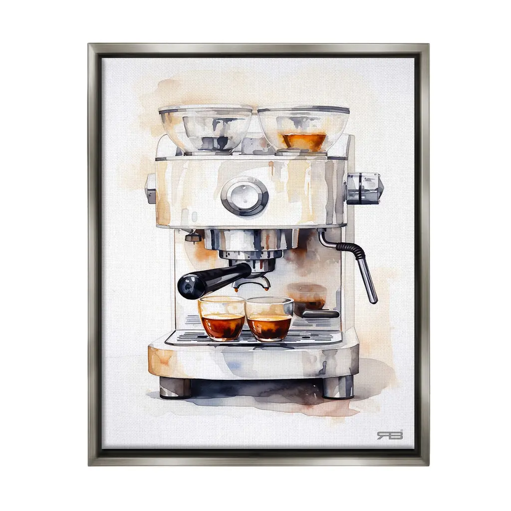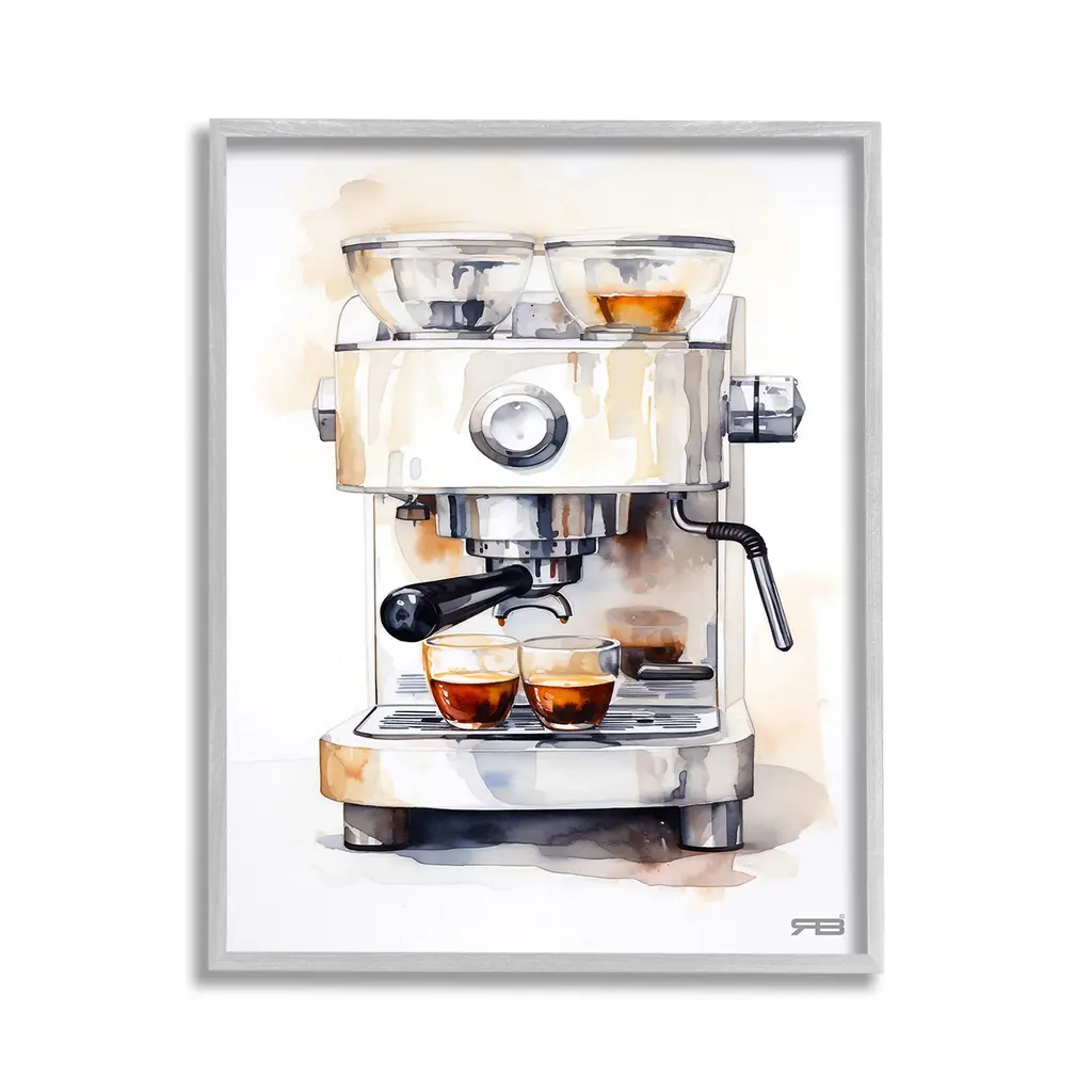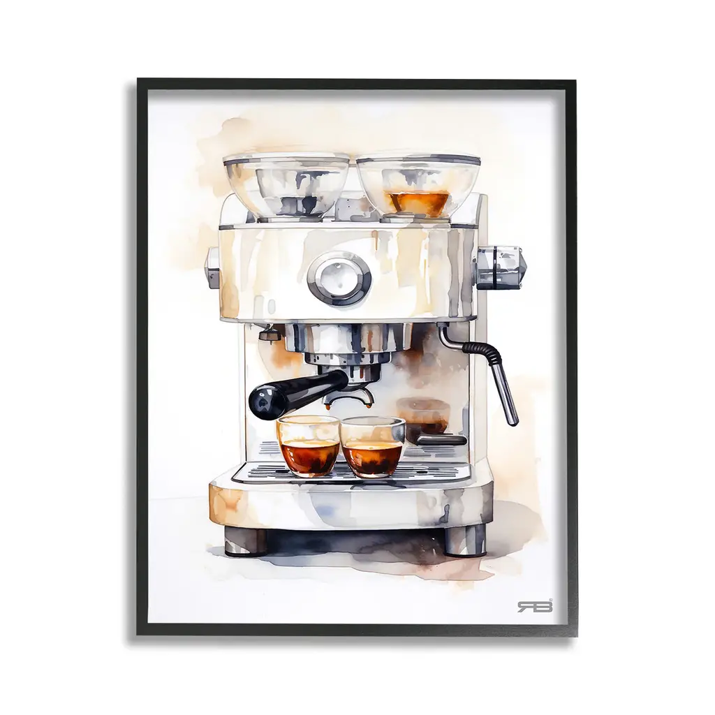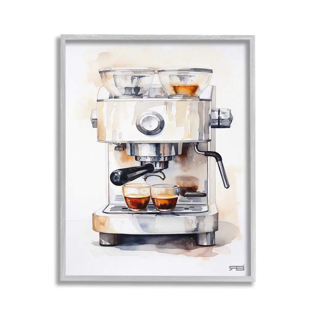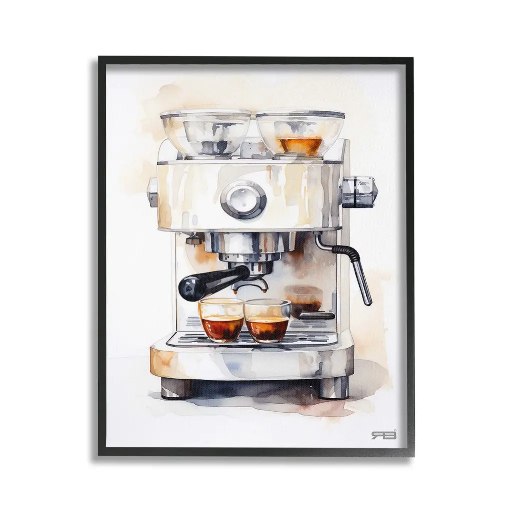 Add dimension to any room with our textured Framed Giclee Artwork. Our framed artwork is securely mounted into a 1.5-inch thick wood grain frame and ready to hang. Frames are available in three alluring styles: black, gray farmhouse and white. In addition, you should check out our oversized options if you want a statement piece. Stupell Wall Art is made in the USA.Features: Dimensions: 11 x 1.5 x 14 FramedFramed Giclee Products are available in the sizes 11"x14", 16"x20" or 24"x30". All Framed Giclee Products have a 1.5" Depth. Wall Art is Ready to Hang with Hardware Free Hanging. No installation required. For Easy Set Up Lean or Layer Artwork on Shelf or Against Wall.Our giclée prints are carefully mounted on a durable MDF backing, and then perfectly finished in a 1.5 inch thick woodgrain frame. Mounted frame colors include black, gray farmhouse and white. Made In USA.Artwork Relates To: Cup, Beverage, Coffee, Coffee Cup, Espresso, Machine, Cafe, KitchenDesign by RB