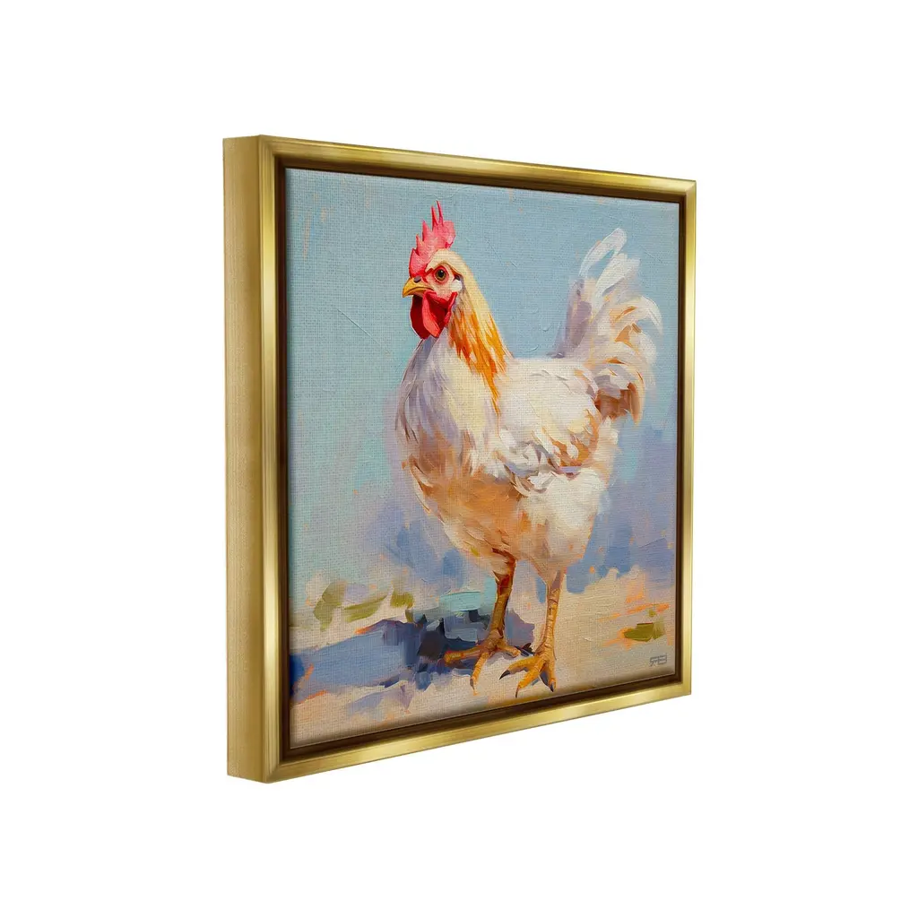 Elevate your home or office to the next level with Stupell Framed Floating Canvas Wall Art. Our premium hand-stretched canvas is mounted securely into a sturdy lightweight frame. The museum-style gap between the wrapped canvas and the box frame gives the illusion of floating artwork. Stupell Wall Art is made in the USA.Features: Dimensions: 18 x 1.7 x 18 Frame, 17 x 1.5 x 17 Canvas ArtFloating Frame Canvas Products are available in sizes 18"x18" and 25"x25". All Floating Frame Canvas Products have a 1.7" Depth.Wall Art is Ready to Hang with Hardware Free Hanging. No Installation required. For Easy Set Up Lean or Layer Artwork on Shelf or Against Wall. Artwork is Permently Fixed into the Frame.Our elevated 1.7" Thick Floating Frame is the perfect complement to our canvas style Wall Art. We use only the highest quality inks in house with industry leading printing solutions. Canvas is hand stretched over a durable wood foundation and then mounted securly into a Modern Box Frame. Made in the USA.Artwork Relates To: Animal, Bird, Chicken, Fowl, Poultry, Hen, Rooster, Farm, Abstract, ModernDesign by RB