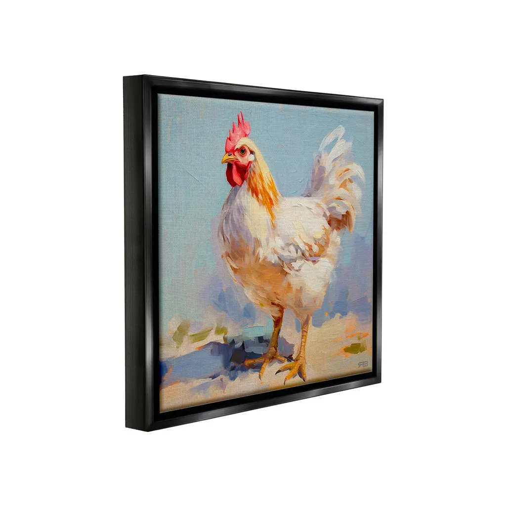 Elevate your home or office to the next level with Stupell Framed Floating Canvas Wall Art. Our premium hand-stretched canvas is mounted securely into a sturdy lightweight frame. The museum-style gap between the wrapped canvas and the box frame gives the illusion of floating artwork. Stupell Wall Art is made in the USA.Features: Dimensions: 18 x 1.7 x 18 Frame, 17 x 1.5 x 17 Canvas ArtFloating Frame Canvas Products are available in sizes 18"x18" and 25"x25". All Floating Frame Canvas Products have a 1.7" Depth.Wall Art is Ready to Hang with Hardware Free Hanging. No Installation required. For Easy Set Up Lean or Layer Artwork on Shelf or Against Wall. Artwork is Permently Fixed into the Frame.Our elevated 1.7" Thick Floating Frame is the perfect complement to our canvas style Wall Art. We use only the highest quality inks in house with industry leading printing solutions. Canvas is hand stretched over a durable wood foundation and then mounted securly into a Modern Box Frame. Made in the USA.Artwork Relates To: Animal, Bird, Chicken, Fowl, Poultry, Hen, Rooster, Farm, Abstract, ModernDesign by RB