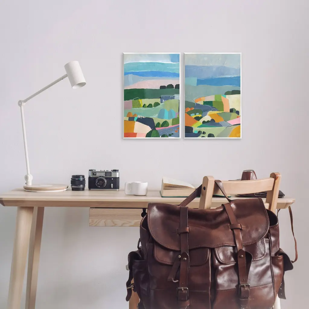Fill any space with Stupell Wall Art Sets. Our wall plaques start as high-quality lithograph prints mounted on durable 0.5-inch thick MDF wood. Each piece is hand finished and comes with a fresh layer of white foil on the sides to give it a crisp, clean look. Plaques arrive ready to hang without installation and come with removable plastic corners to keep them from damage in transit. Stupell Wall Art is made in the USA.Features: Dimensions: 2 Piece Set, Each Panel is 10 x 0.5 x 15 InchesTwo Piece Wall Plaque Sets are available as 10"x15" or 13"x19" Panels. All Wall Art Plaques have a 0.5" Depth.Wall Art is Ready to Hang with Hardware Free Hanging. No installation required. For Easy Set Up Lean or Layer Artwork on Shelf or Against Wall.All of our wall plaques start off as high quality lithograph prints that are then mounted on durable 0.5 inch thick MDF wood. Each piece is hand finished and comes with a fresh layer of foil on the sides to give it a crisp clean look. Made In USA.Artwork Relates To: Painting, Modern, Landscape, Modern, Abstract, Country, Field, RiverDesign by Jan Weiss