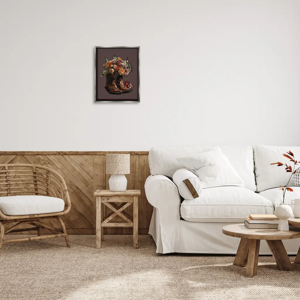 Elevate your home or office to the next level with Stupell Framed Floating Canvas Wall Art. Our premium hand-stretched canvas is mounted securely into a sturdy lightweight frame. The museum-style gap between the wrapped canvas and the box frame gives the illusion of floating artwork. Stupell Wall Art is made in the USA.Features: Dimensions: 17 x 1.7 x 21 Frame, 16 x 1.5 x 20 Canvas ArtFloating Frame Canvas Products are available in sizes 17"x21" and 25"x31". All Floating Frame Canvas Products have a 1.7" Depth.Wall Art is Ready to Hang with Hardware Free Hanging. No Installation required. For Easy Set Up Lean or Layer Artwork on Shelf or Against Wall. Artwork is Permently Fixed into the Frame.Our elevated 1.7" Thick Floating Frame is the perfect complement to our canvas style Wall Art. We use only the highest quality inks in house with industry leading printing solutions. Canvas is hand stretched over a durable wood foundation and then mounted securly into a Modern Box Frame. Made in the USA.Artwork Relates To: Equestrian, Rodeo, Country, Southwestern, Cowboy, Cowgirl, Cowboy Boot, Flower, Floral, BouquetDesign by Amelia Noyes