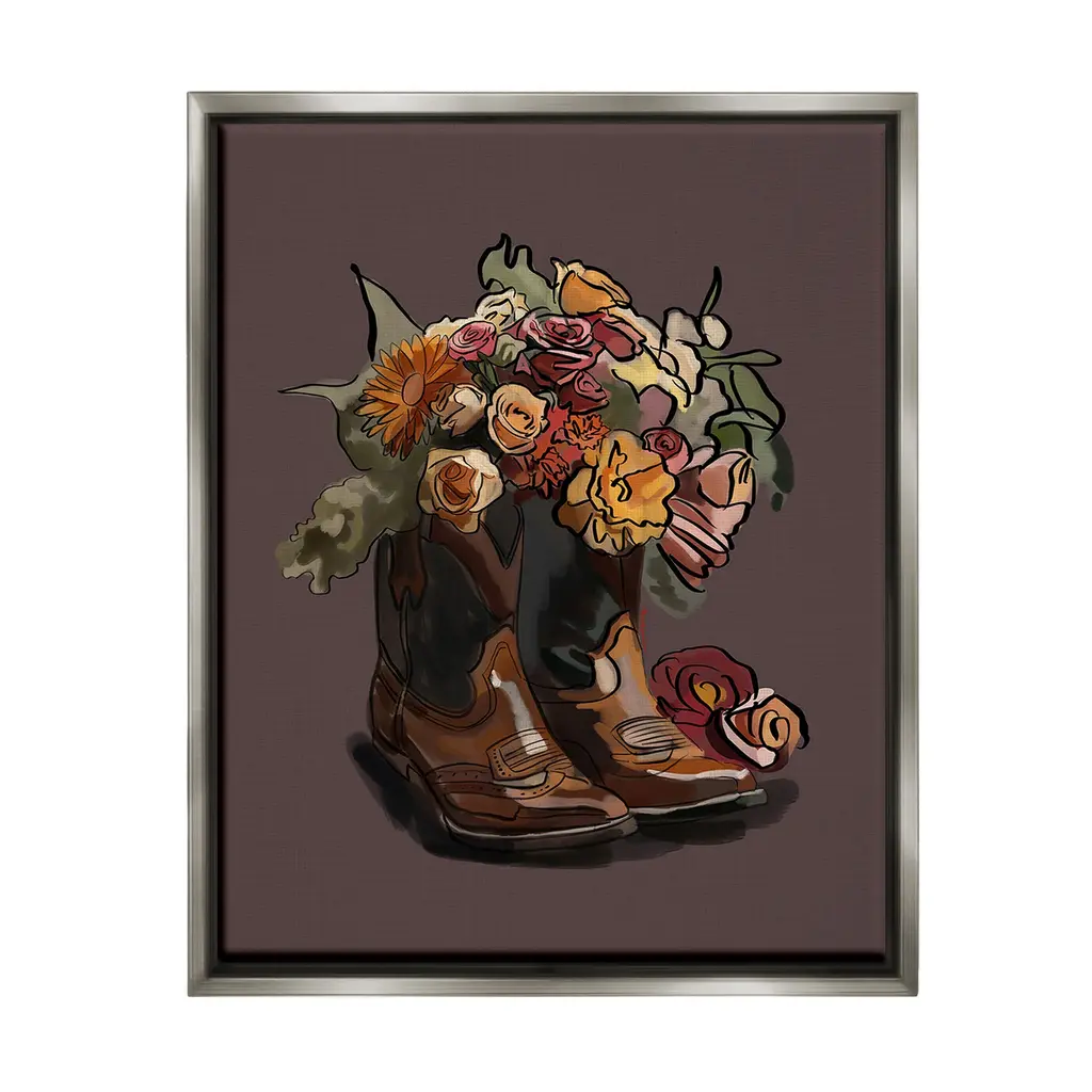 Add dimension to any room with our textured Framed Giclee Artwork. Our framed artwork is securely mounted into a 1.5-inch thick wood grain frame and ready to hang. Frames are available in three alluring styles: black, gray farmhouse and white. In addition, you should check out our oversized options if you want a statement piece. Stupell Wall Art is made in the USA.Features: Dimensions: 11 x 1.5 x 14 FramedFramed Giclee Products are available in the sizes 11"x14", 16"x20" or 24"x30". All Framed Giclee Products have a 1.5" Depth. Wall Art is Ready to Hang with Hardware Free Hanging. No installation required. For Easy Set Up Lean or Layer Artwork on Shelf or Against Wall.Our giclée prints are carefully mounted on a durable MDF backing, and then perfectly finished in a 1.5 inch thick woodgrain frame. Mounted frame colors include black, gray farmhouse and white. Made In USA.Artwork Relates To: Equestrian, Rodeo, Country, Southwestern, Cowboy, Cowgirl, Cowboy Boot, Flower, Floral, BouquetDesign by Amelia Noyes