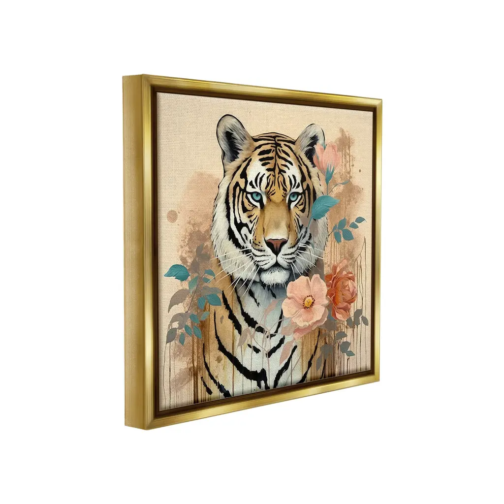 Elevate your home or office to the next level with Stupell Framed Floating Canvas Wall Art. Our premium hand-stretched canvas is mounted securely into a sturdy lightweight frame. The museum-style gap between the wrapped canvas and the box frame gives the illusion of floating artwork. Stupell Wall Art is made in the USA.Features: Dimensions: 18 x 1.7 x 18 Frame, 17 x 1.5 x 17 Canvas ArtFloating Frame Canvas Products are available in sizes 18"x18" and 25"x25". All Floating Frame Canvas Products have a 1.7" Depth.Wall Art is Ready to Hang with Hardware Free Hanging. No Installation required. For Easy Set Up Lean or Layer Artwork on Shelf or Against Wall. Artwork is Permently Fixed into the Frame.Our elevated 1.7" Thick Floating Frame is the perfect complement to our canvas style Wall Art. We use only the highest quality inks in house with industry leading printing solutions. Canvas is hand stretched over a durable wood foundation and then mounted securly into a Modern Box Frame. Made in the USA.Artwork Relates To: Modern, Animal, Mammal, Wildlife, Pattern, Floral, Tiger, Flower, BlossomDesign by Lazar Studio