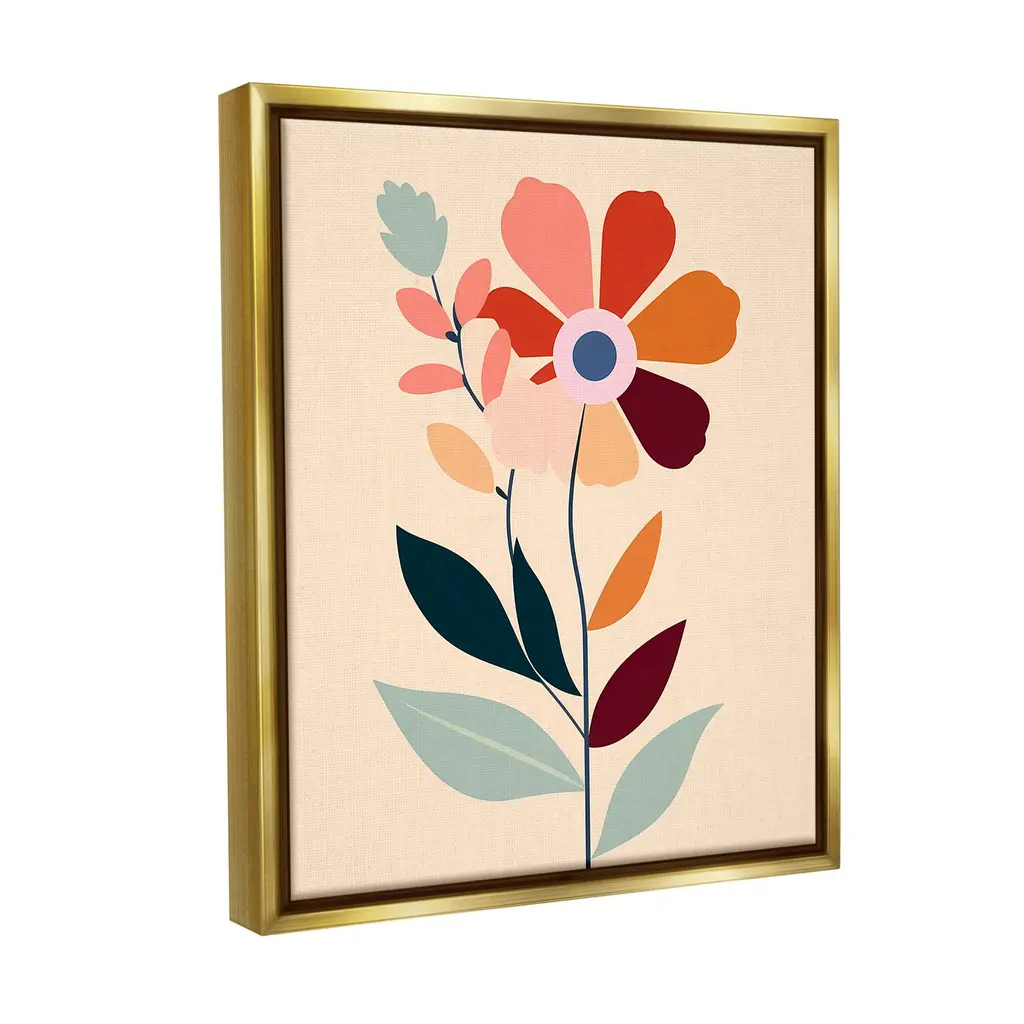 Elevate your home or office to the next level with Stupell Framed Floating Canvas Wall Art. Our premium hand-stretched canvas is mounted securely into a sturdy lightweight frame. The museum-style gap between the wrapped canvas and the box frame gives the illusion of floating artwork. Stupell Wall Art is made in the USA.Features: Dimensions: 17 x 1.7 x 21 Frame, 16 x 1.5 x 20 Canvas ArtFloating Frame Canvas Products are available in sizes 17"x21" and 25"x31". All Floating Frame Canvas Products have a 1.7" Depth.Wall Art is Ready to Hang with Hardware Free Hanging. No Installation required. For Easy Set Up Lean or Layer Artwork on Shelf or Against Wall. Artwork is Permently Fixed into the Frame.Our elevated 1.7" Thick Floating Frame is the perfect complement to our canvas style Wall Art. We use only the highest quality inks in house with industry leading printing solutions. Canvas is hand stretched over a durable wood foundation and then mounted securly into a Modern Box Frame. Made in the USA.Artwork Relates To: Modern, Abstract, Floral, Flower, Blossom, Pattern, Geometric, Bloom, RetroDesign by Walker Noble