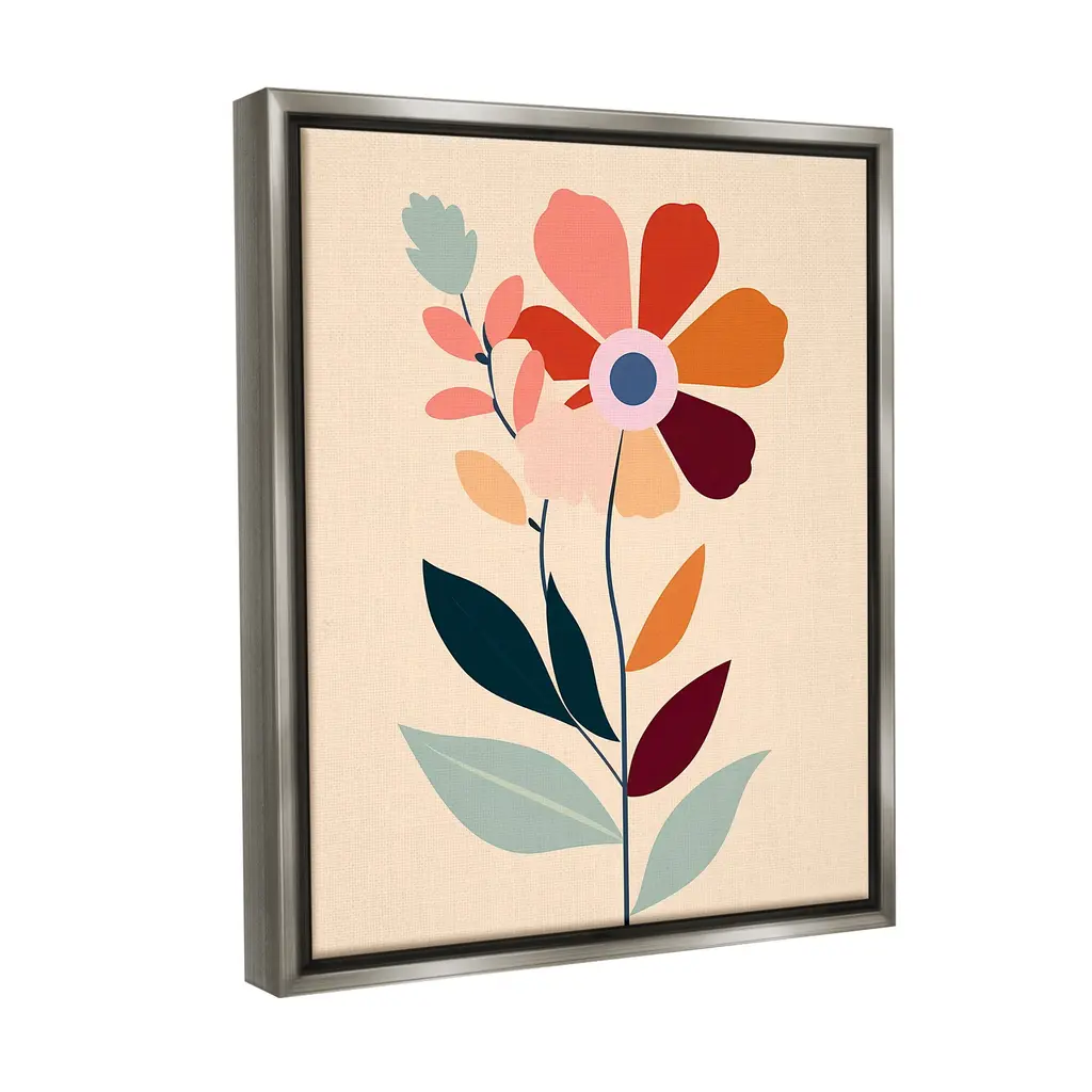 Elevate your home or office to the next level with Stupell Framed Floating Canvas Wall Art. Our premium hand-stretched canvas is mounted securely into a sturdy lightweight frame. The museum-style gap between the wrapped canvas and the box frame gives the illusion of floating artwork. Stupell Wall Art is made in the USA.Features: Dimensions: 17 x 1.7 x 21 Frame, 16 x 1.5 x 20 Canvas ArtFloating Frame Canvas Products are available in sizes 17"x21" and 25"x31". All Floating Frame Canvas Products have a 1.7" Depth.Wall Art is Ready to Hang with Hardware Free Hanging. No Installation required. For Easy Set Up Lean or Layer Artwork on Shelf or Against Wall. Artwork is Permently Fixed into the Frame.Our elevated 1.7" Thick Floating Frame is the perfect complement to our canvas style Wall Art. We use only the highest quality inks in house with industry leading printing solutions. Canvas is hand stretched over a durable wood foundation and then mounted securly into a Modern Box Frame. Made in the USA.Artwork Relates To: Modern, Abstract, Floral, Flower, Blossom, Pattern, Geometric, Bloom, RetroDesign by Walker Noble