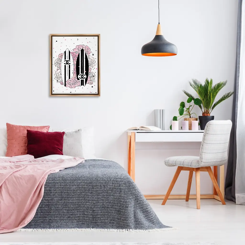 Elevate your home or office to the next level with Stupell Framed Floating Canvas Wall Art. Our premium hand-stretched canvas is mounted securely into a sturdy lightweight frame. The museum-style gap between the wrapped canvas and the box frame gives the illusion of floating artwork. Stupell Wall Art is made in the USA.Features: Dimensions: 17 x 1.7 x 21 Frame, 16 x 1.5 x 20 Canvas ArtFloating Frame Canvas Products are available in sizes 17"x21" and 25"x31". All Floating Frame Canvas Products have a 1.7" Depth.Wall Art is Ready to Hang with Hardware Free Hanging. No Installation required. For Easy Set Up Lean or Layer Artwork on Shelf or Against Wall. Artwork is Permently Fixed into the Frame.Our elevated 1.7" Thick Floating Frame is the perfect complement to our canvas style Wall Art. We use only the highest quality inks in house with industry leading printing solutions. Canvas is hand stretched over a durable wood foundation and then mounted securly into a Modern Box Frame. Made in the USA.Artwork Relates To: Glam, Fashion, Pattern, Surf, Nautical, Surfboard, Logo, Flower, FloralDesign by Martina Pavlova