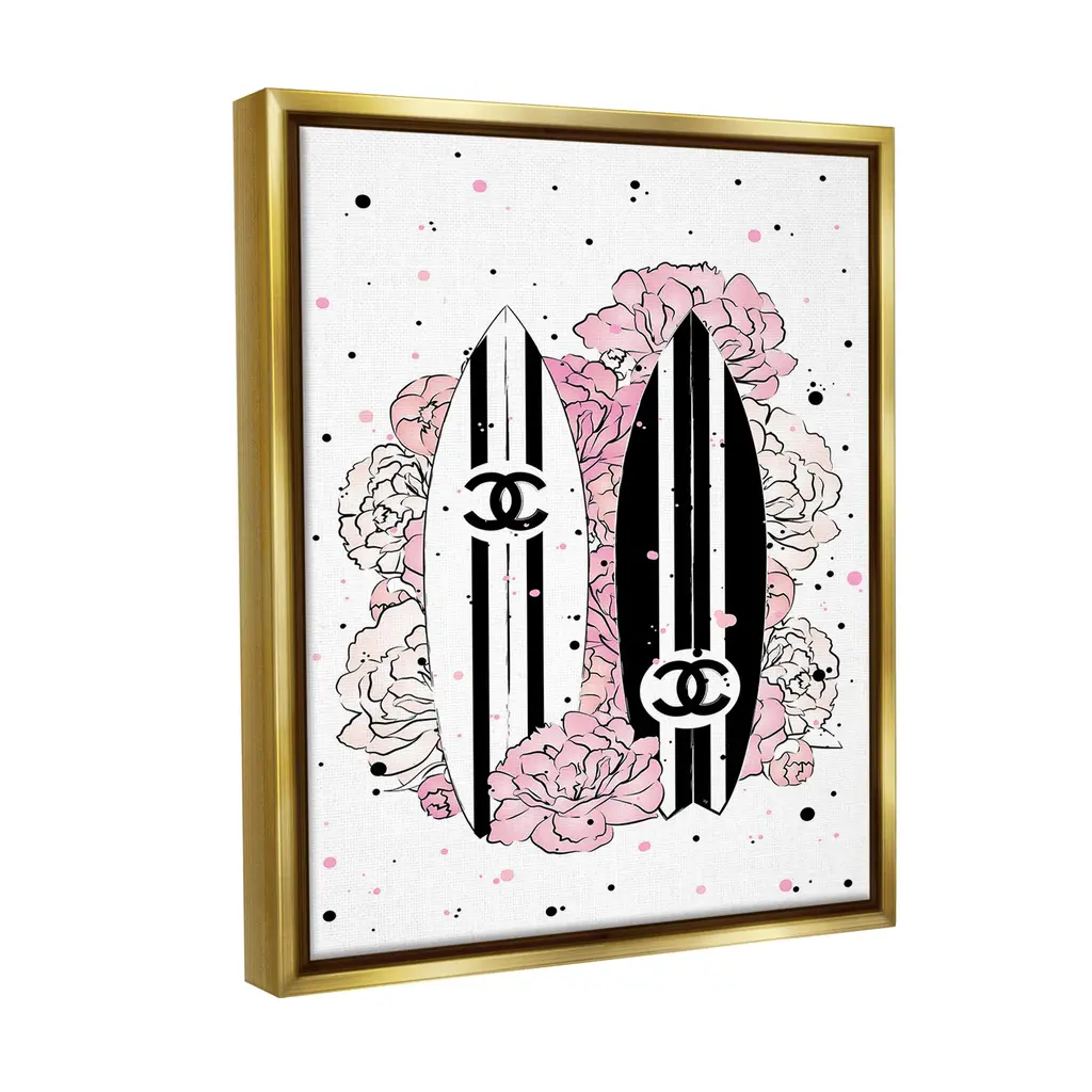 Elevate your home or office to the next level with Stupell Framed Floating Canvas Wall Art. Our premium hand-stretched canvas is mounted securely into a sturdy lightweight frame. The museum-style gap between the wrapped canvas and the box frame gives the illusion of floating artwork. Stupell Wall Art is made in the USA.Features: Dimensions: 17 x 1.7 x 21 Frame, 16 x 1.5 x 20 Canvas ArtFloating Frame Canvas Products are available in sizes 17"x21" and 25"x31". All Floating Frame Canvas Products have a 1.7" Depth.Wall Art is Ready to Hang with Hardware Free Hanging. No Installation required. For Easy Set Up Lean or Layer Artwork on Shelf or Against Wall. Artwork is Permently Fixed into the Frame.Our elevated 1.7" Thick Floating Frame is the perfect complement to our canvas style Wall Art. We use only the highest quality inks in house with industry leading printing solutions. Canvas is hand stretched over a durable wood foundation and then mounted securly into a Modern Box Frame. Made in the USA.Artwork Relates To: Glam, Fashion, Pattern, Surf, Nautical, Surfboard, Logo, Flower, FloralDesign by Martina Pavlova
